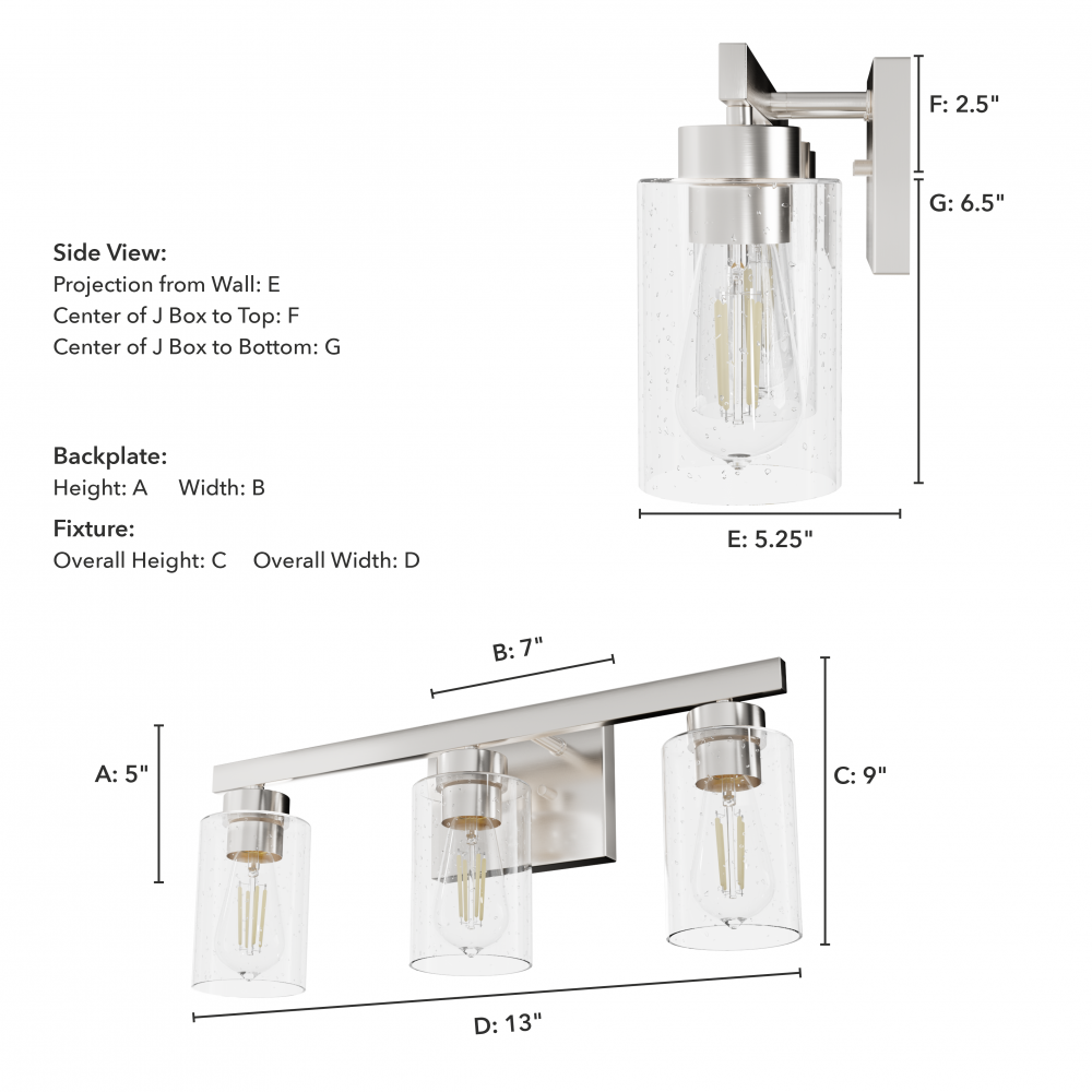 Sconce/Vanity Center of J Box to Bottom: