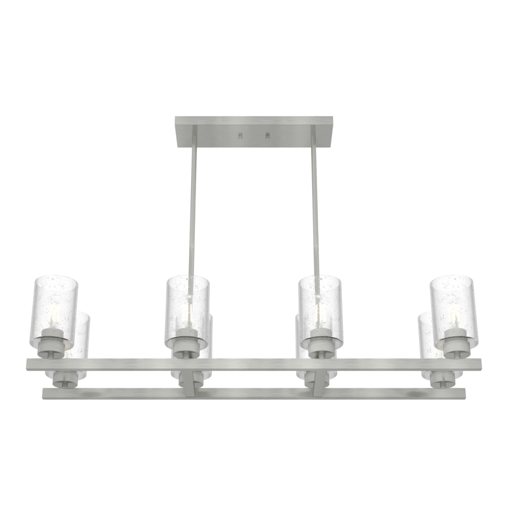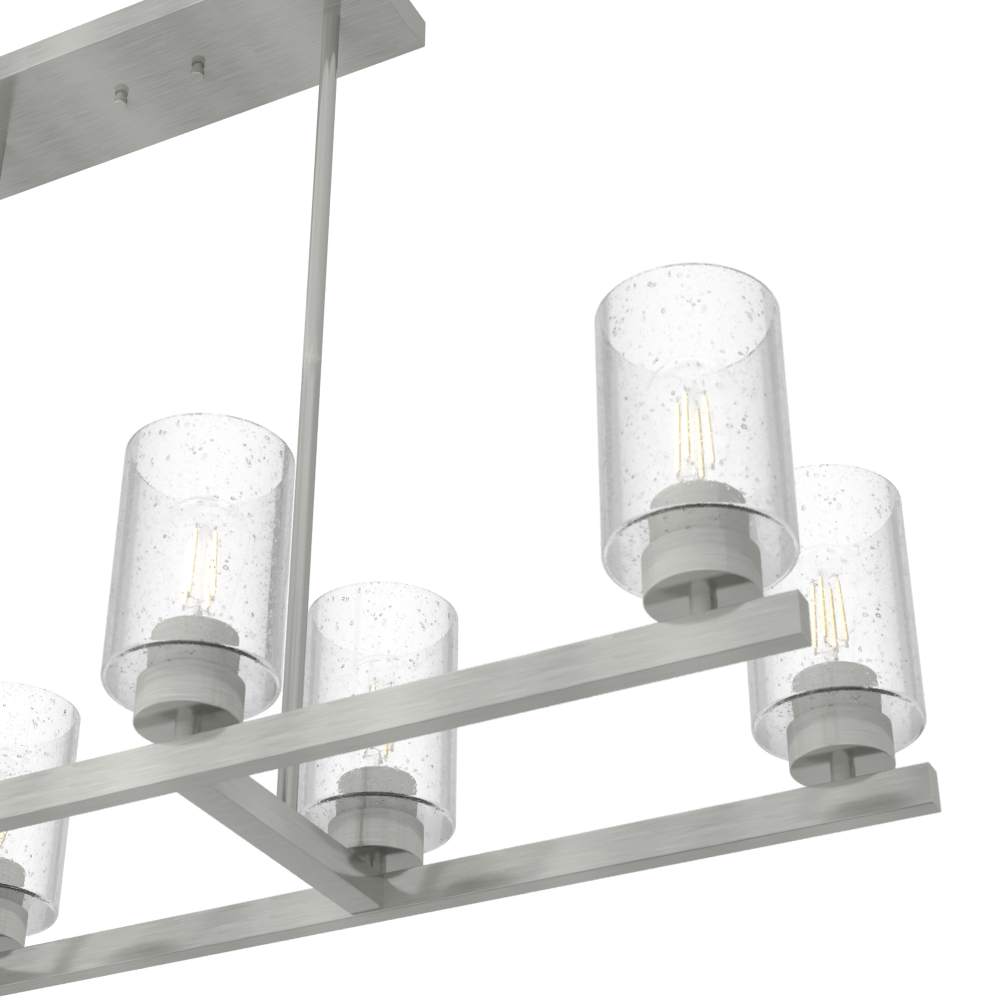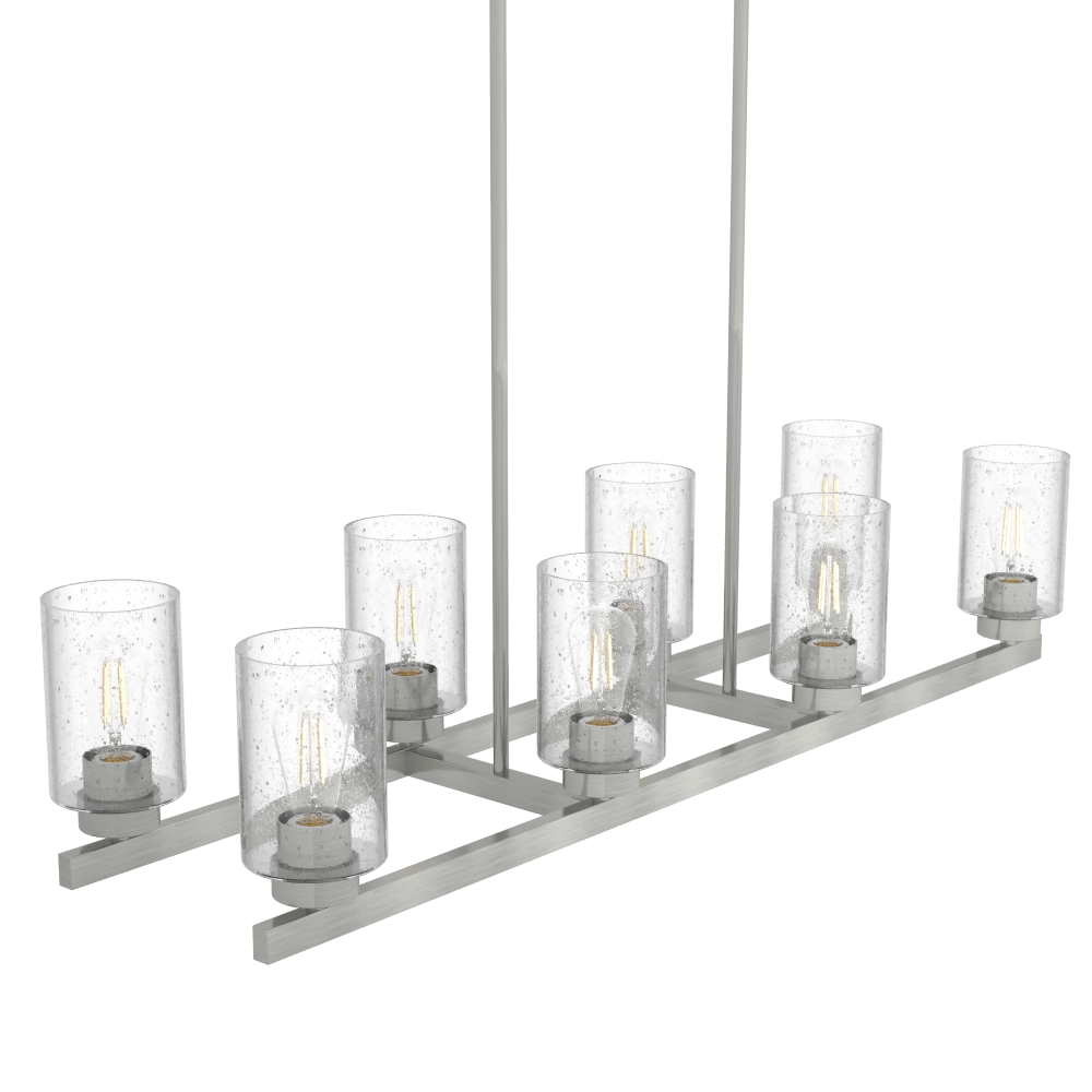Simple form. Eye-catching detail. Designers gave the Hartland linear chandelier clean lines, which lends the focus to the stunning clear seeded glass. It creates a brilliant effect whether it’s from the sun streaming through or the warm glow of an Edison LED bulb. The perfect addition to our popular Hartland lighting collection.
