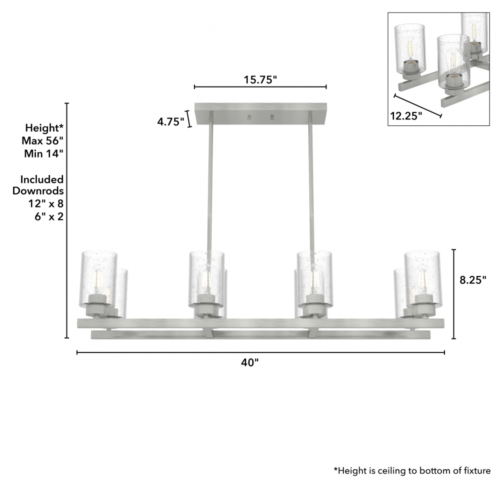 Requires 8 E26 bulbs. Bulbs not included.
