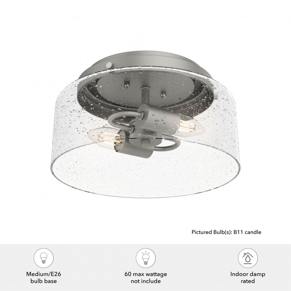 A small light fixture with a lot of sparkle. The Hartland flush mount’s clear seeded glass is sure to catch your eye as it sparkles from the rays of light, no matter the bulbs you choose. It has a revised classic look that works with a variety of styles. Combine the Hartland flush mount light with other members of its collection for a cohesive look.