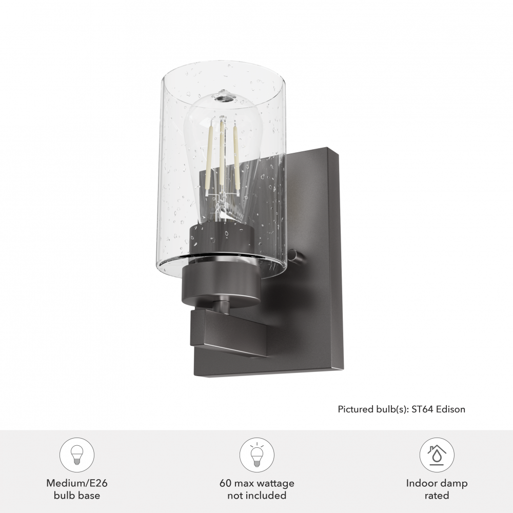 Let the Harland sconce be the guiding light leading your guests to the areas you want to highlight. This light is a mixture of metal and wood-inspired detailing featuring a beautiful, seeded glass shade. Place two or three down a long hallway or place two on either side of a work of art or mirror to give light to your fantastic style. Add other lights from the Hartland collection to create a warm, inviting space.