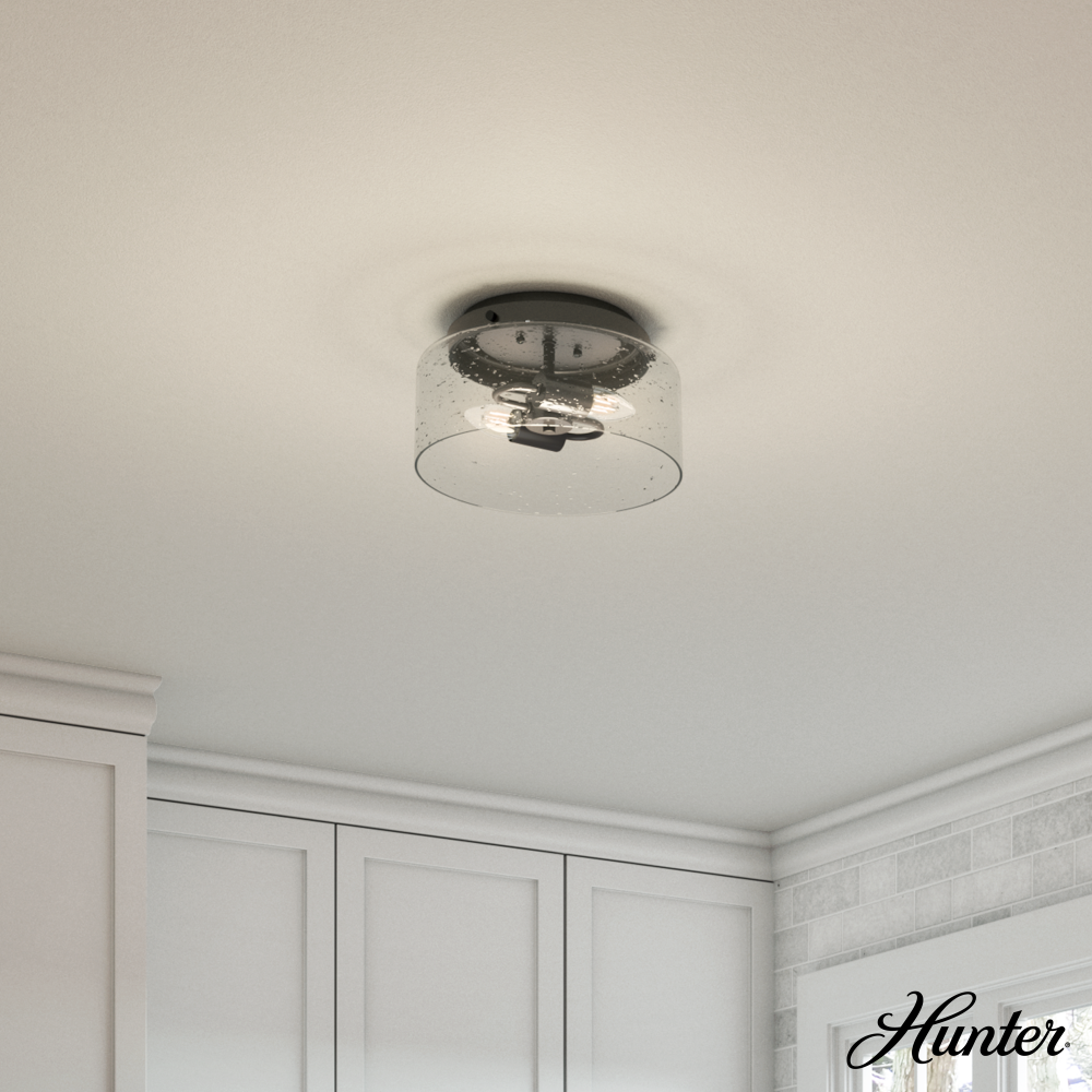 Hunter Hartland Noble Bronze with Seeded Glass 2 Light Flush Mount Ceiling Light Fixture