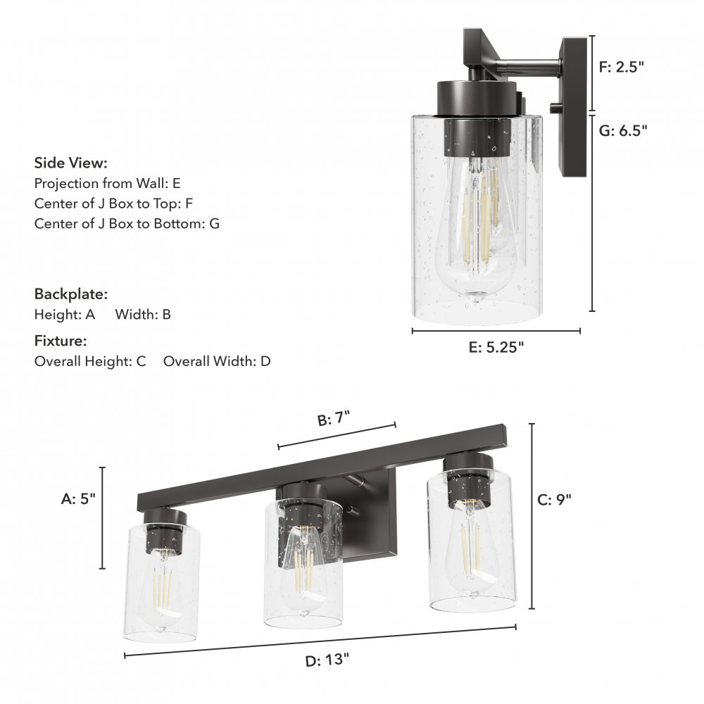 Sconce/Vanity Center of J Box to Bottom:
