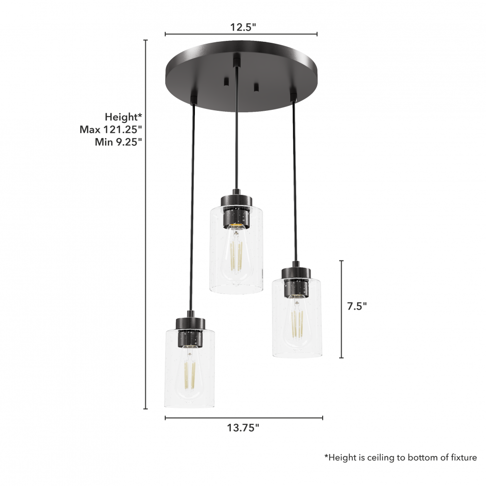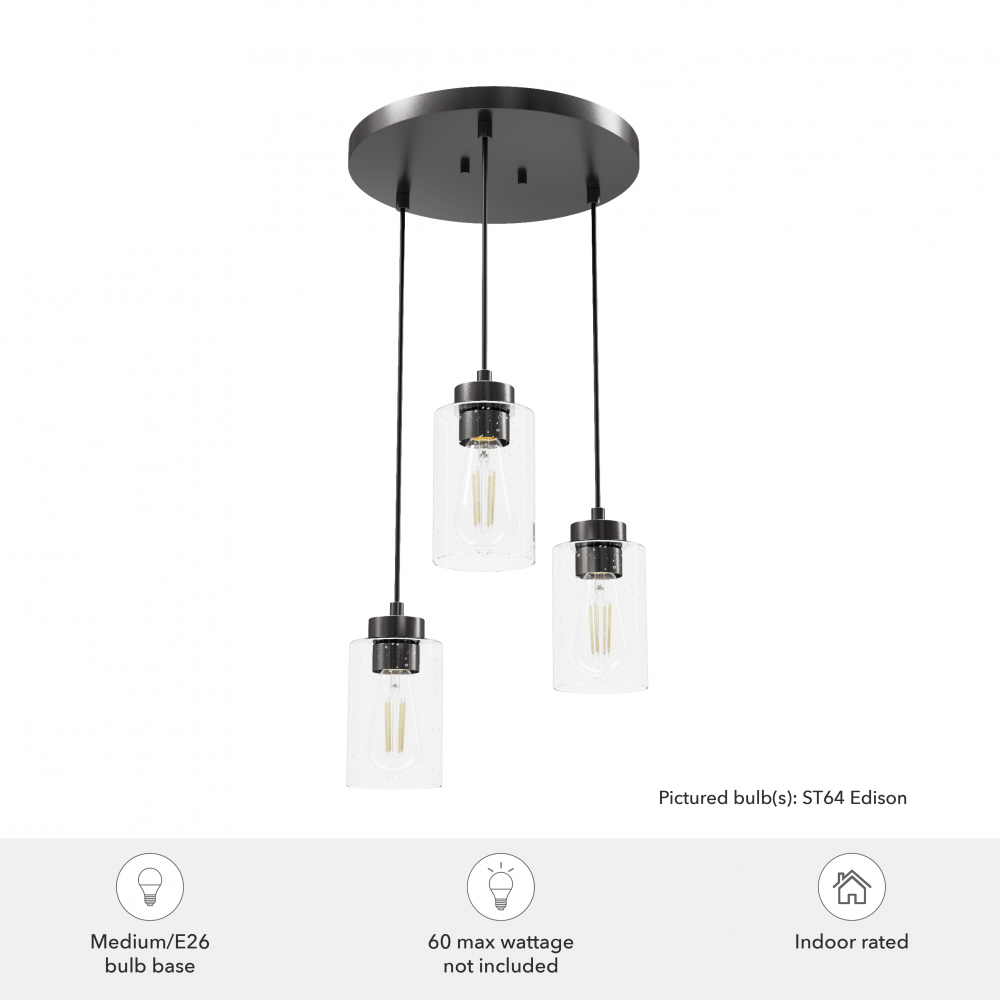 The Hartland round cluster is a fixture for all styles. Whether your taste is farmhouse, industrial, or bohemian, the Hartland fixture will suit your style. The organic look of the glass shades hanging from the metal base forms a glow that will light your evenings beautifully. The finish options help you find the perfect look for your space. Create a more cohesive look by adding other lights from the Hartland collection or mix and match with fixtures from our other collections.