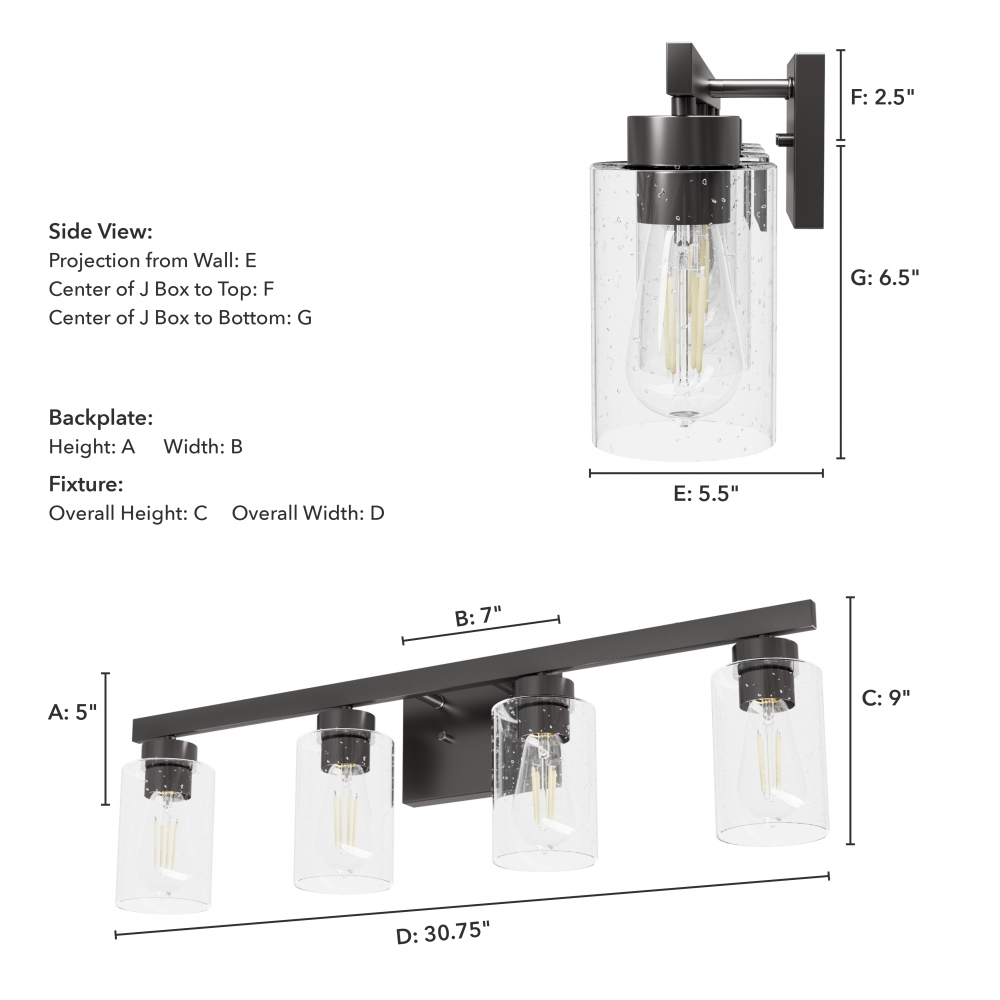 BULB RECOMMENDATION: Maximum W per light bulb or equivalent LED bulb. Bulbs not included.