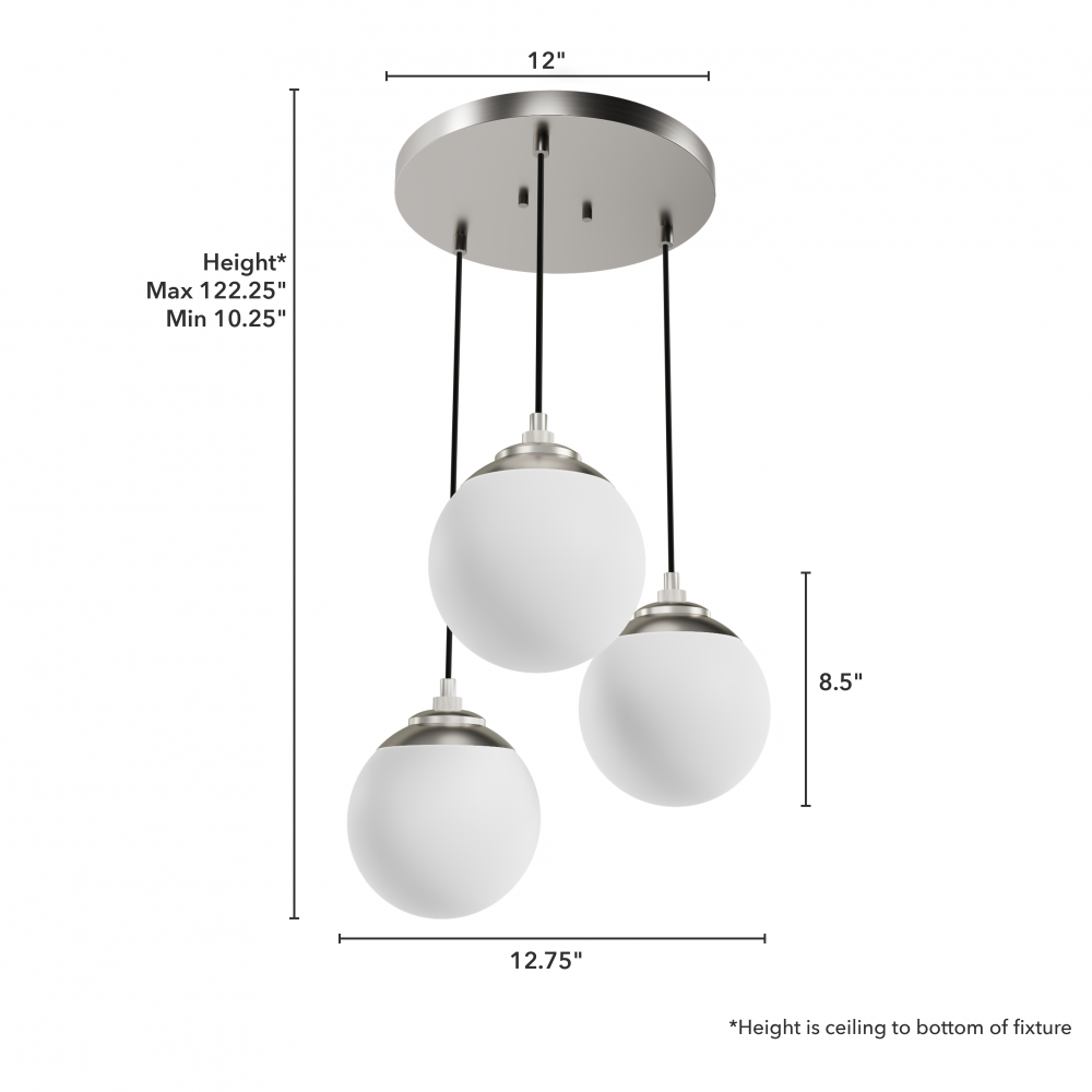 CUSTOMIZABLE HANGING OPTIONS: With the minimum required cord, the hanging length is inches. When using all of the included cord, the maximum hanging length is inches.
