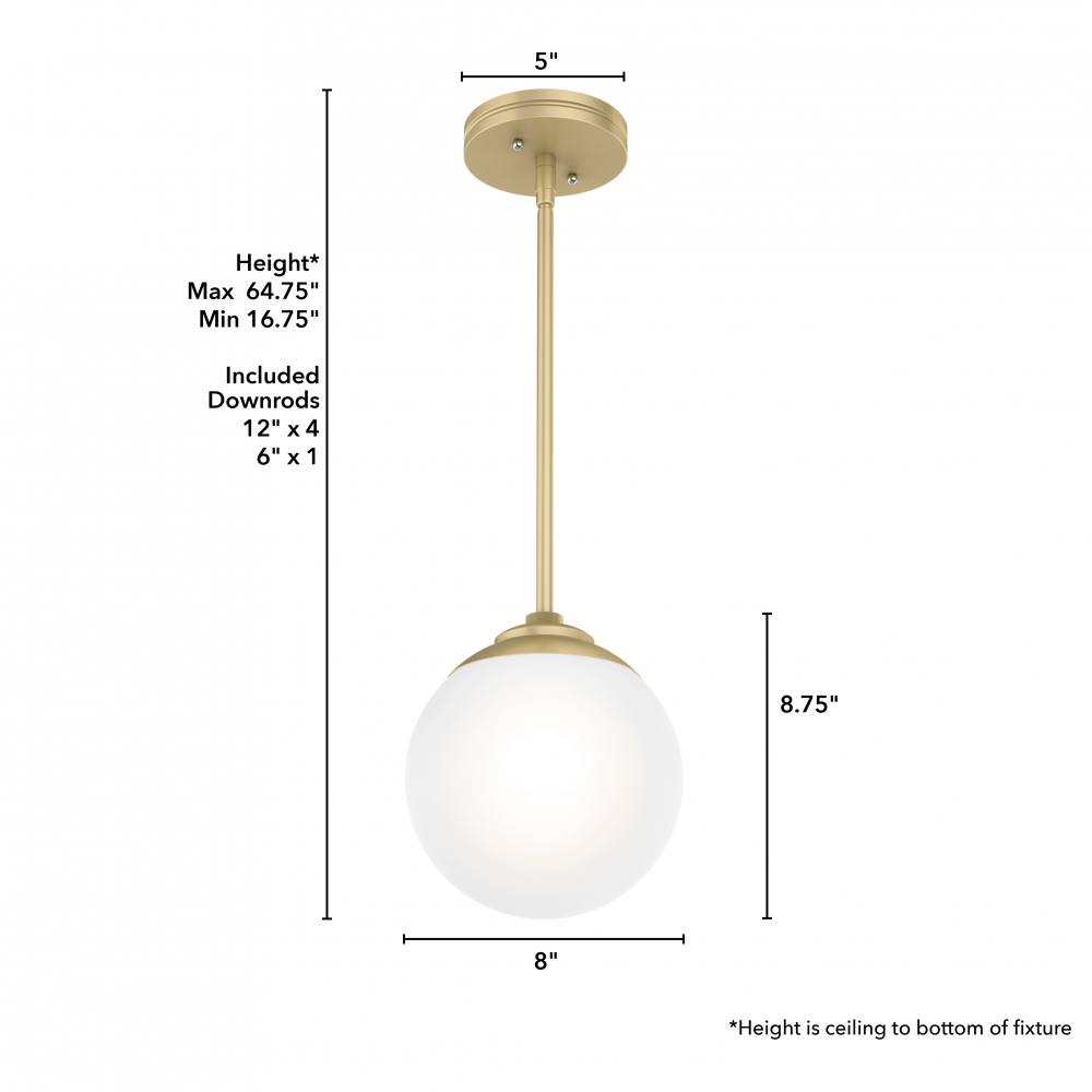 CUSTOMIZABLE HANGING OPTIONS: With the minimum required downrod, the hanging length is 16.75 inches. When using all of the included downrod, the maximum hanging length is 64.75 inches.