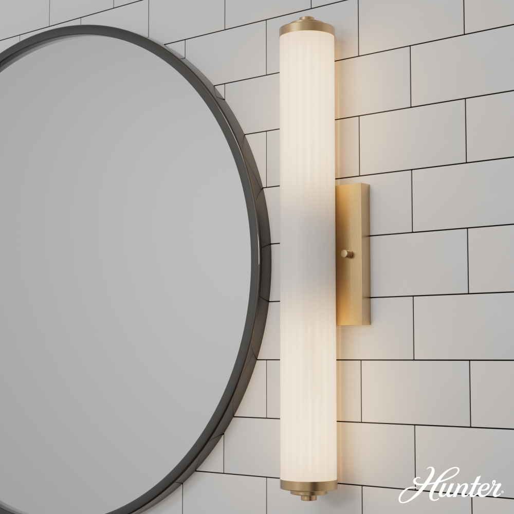 Perhaps the graceful design of the Holly Grove vanity light encourages its use beyond the powder room. The shade, like a rolled scroll clasped by a metal band, is both art deco and elegant, making it a suitable accent light over art or shelves. Make your home modern and fashionable with the Holly Grove collection. Mix and match with fans from our ceiling fan collections to fully finish your space.