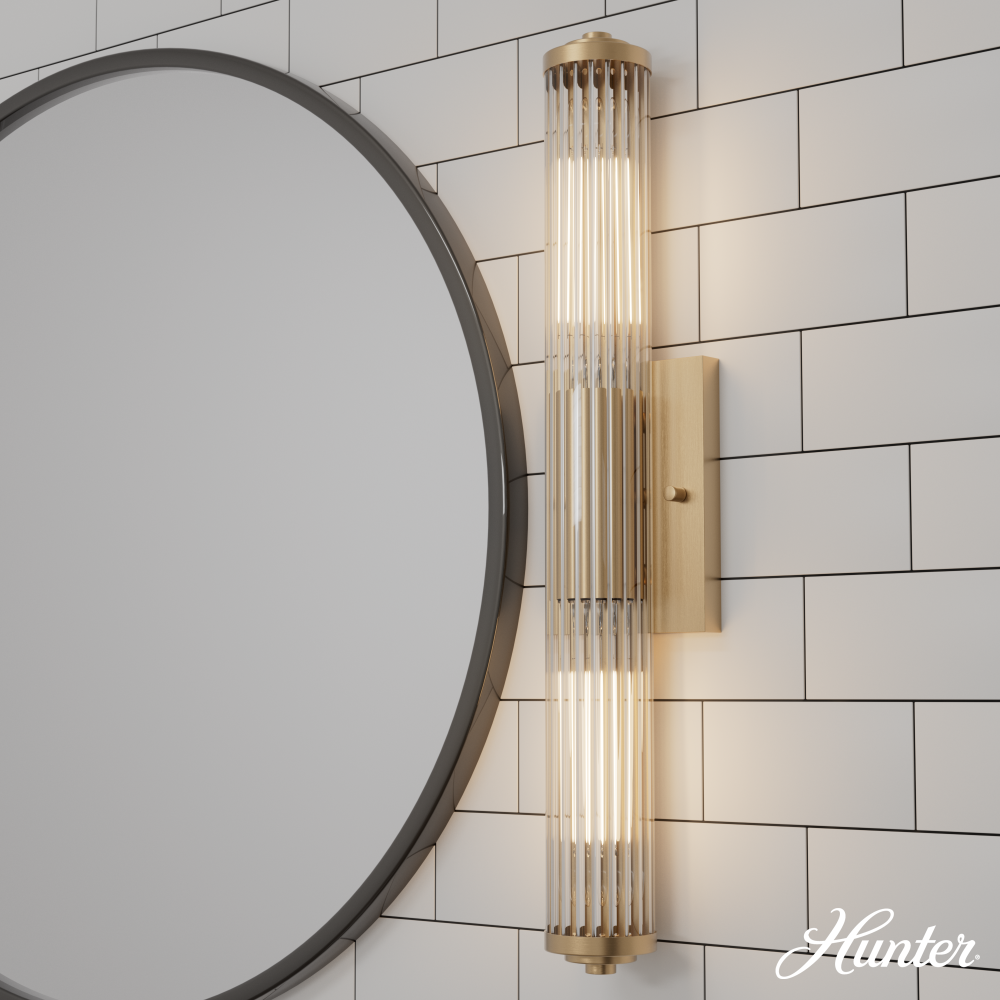 Perhaps the graceful design of the Holly Grove vanity light encourages its use beyond the powder room. The shade, like a rolled scroll clasped by a metal band, is both art deco and elegant, making it a suitable accent light over art or shelves. Make your home modern and fashionable with the Holly Grove collection. Mix and match with fans from our ceiling fan collections to fully finish your space.