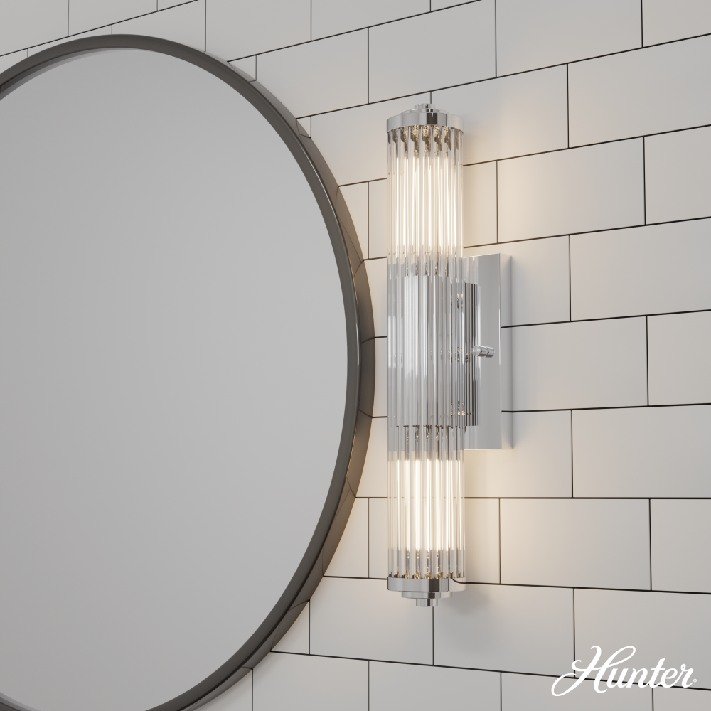 Perhaps the graceful design of the Holly Grove vanity light encourages its use beyond the powder room. The shade, like a rolled scroll clasped by a metal band, is both art deco and elegant, making it a suitable accent light over art or shelves. Make your home modern and fashionable with the Holly Grove collection. Mix and match with fans from our ceiling fan collections to fully finish your space.