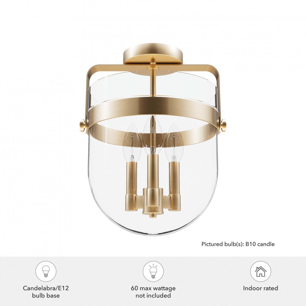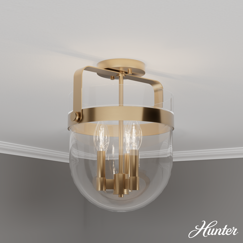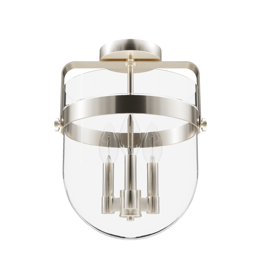 This light brings a fresh look to any room. Laundry is even made more delightful under the glow of the Karloff semi-flush mount light fixture. The metal accents suspend the bell-shaped glass which provides clear, beautiful lighting and creates an inviting feeling in every space. Get all the fixtures from the Karloff collection and your home will shine with all the bells and whistles.