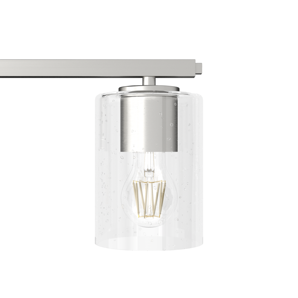 Modern meets warmth with the Kerrison vanity, designed to dress up any bathroom. The fixture’s industrial aesthetic and simple geometry are balanced by soft light shining through clear, seeded glass. Damp-rated to withstand moisture and humidity, the Kerrison vanity offers the just-right amount of light to glow up your space. Mix and match with other fixtures from this collection or from our ceiling fan designs.