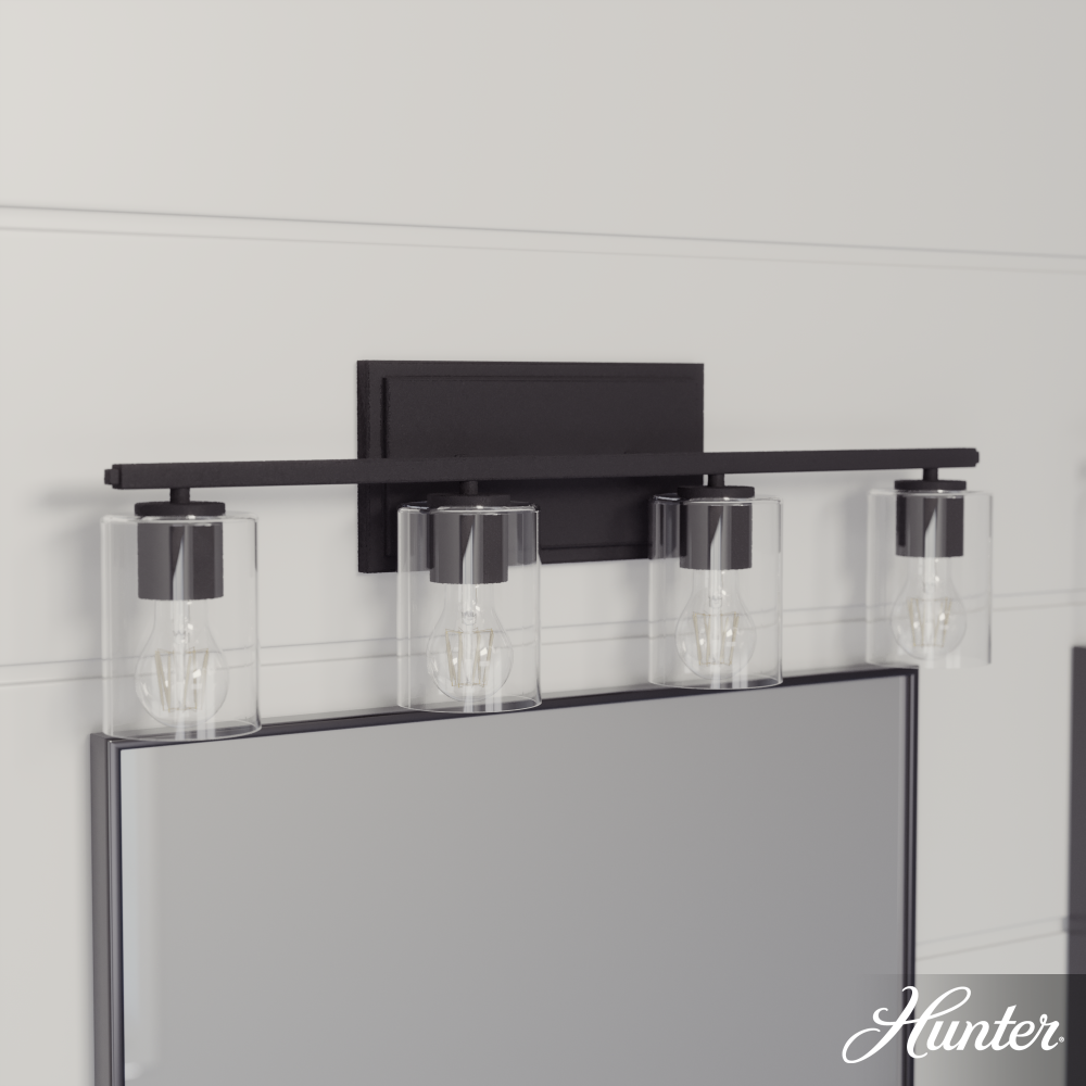 Modern meets warmth with the Kerrison vanity, designed to dress up any bathroom. The fixture’s industrial aesthetic and simple geometry are balanced by soft light shining through clear, seeded glass. Damp-rated to withstand moisture and humidity, the Kerrison vanity offers the just-right amount of light to glow up your space. Mix and match with other fixtures from this collection or from our ceiling fan designs.