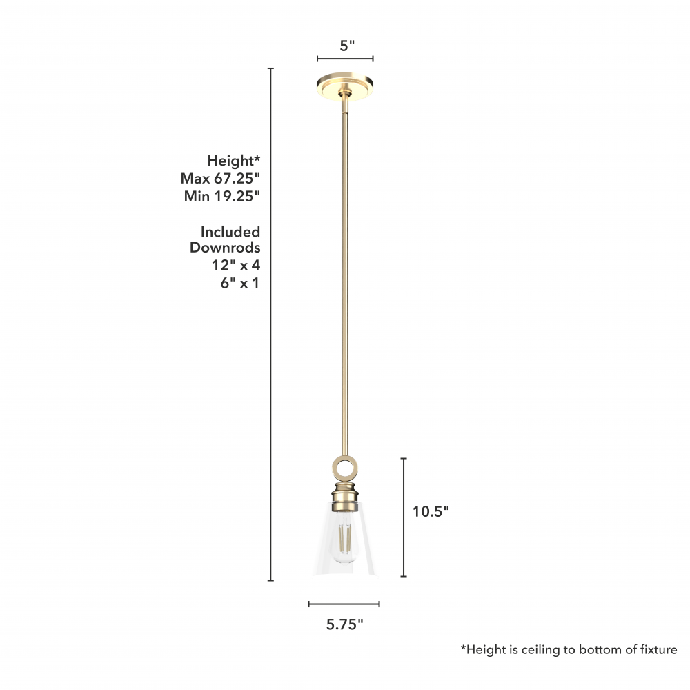CUSTOMIZABLE HANGING OPTIONS: With the minimum required downrod, the hanging length is 19.25 inches. When using all of the included downrod, the maximum hanging length is 67.25 inches.
