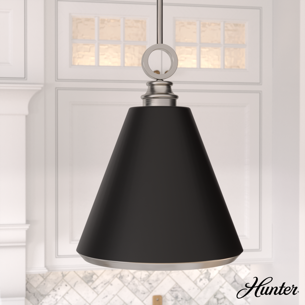 Suitable in any place where you entertain your guests will be 'wowed'. The Klein pendant makes a statement and creates a conversation at any party. The ring above the cone-shaped metal shade is the crowning piece of this sleek design. Make a modern statement with the Klein pendant light. Mix and match with other fixtures from this collection or from our ceiling fan designs.