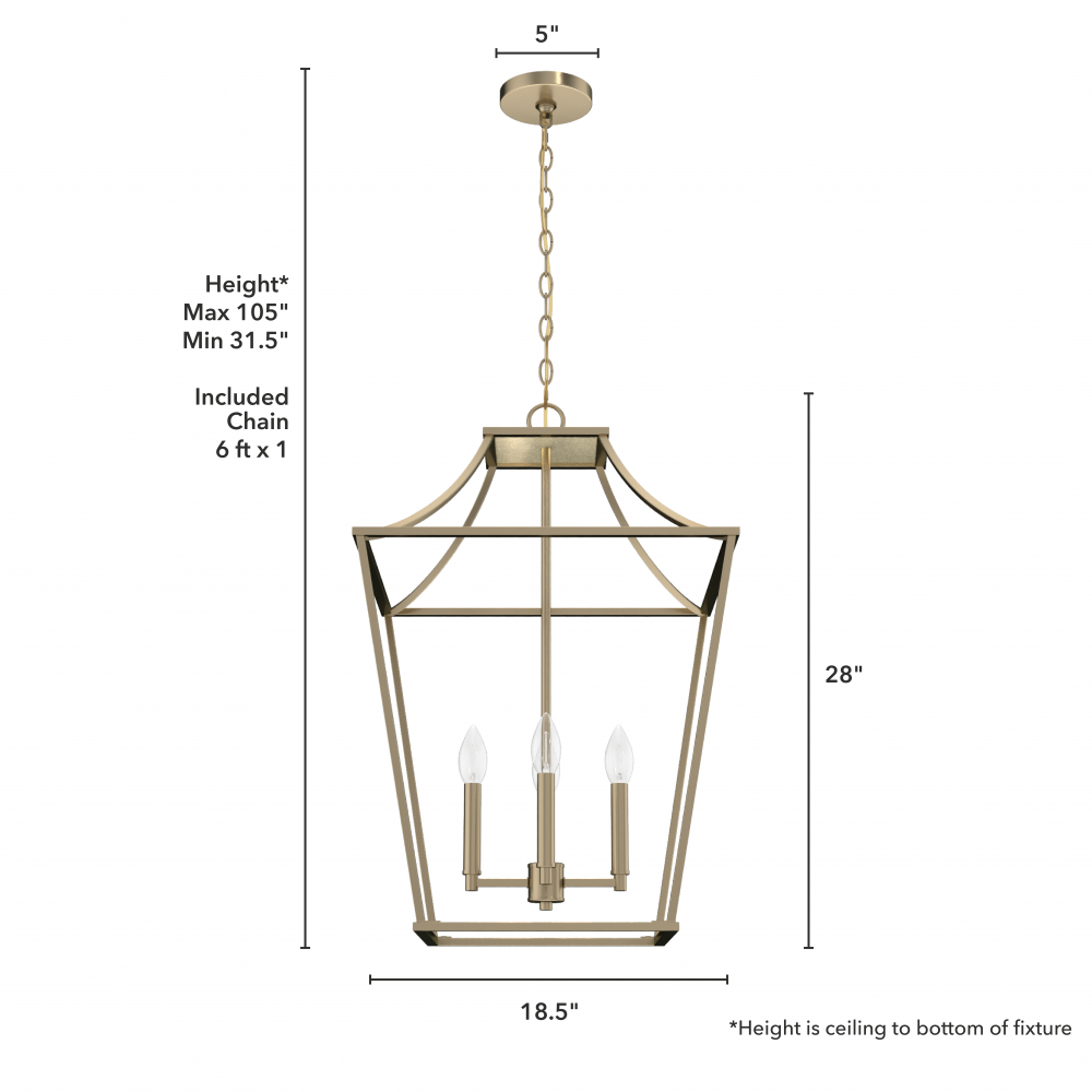 CUSTOMIZABLE HANGING OPTIONS: With the minimum required chain, the hanging length is 31.5 inches. When using all of the included chain, the maximum hanging length is 105 inches.
