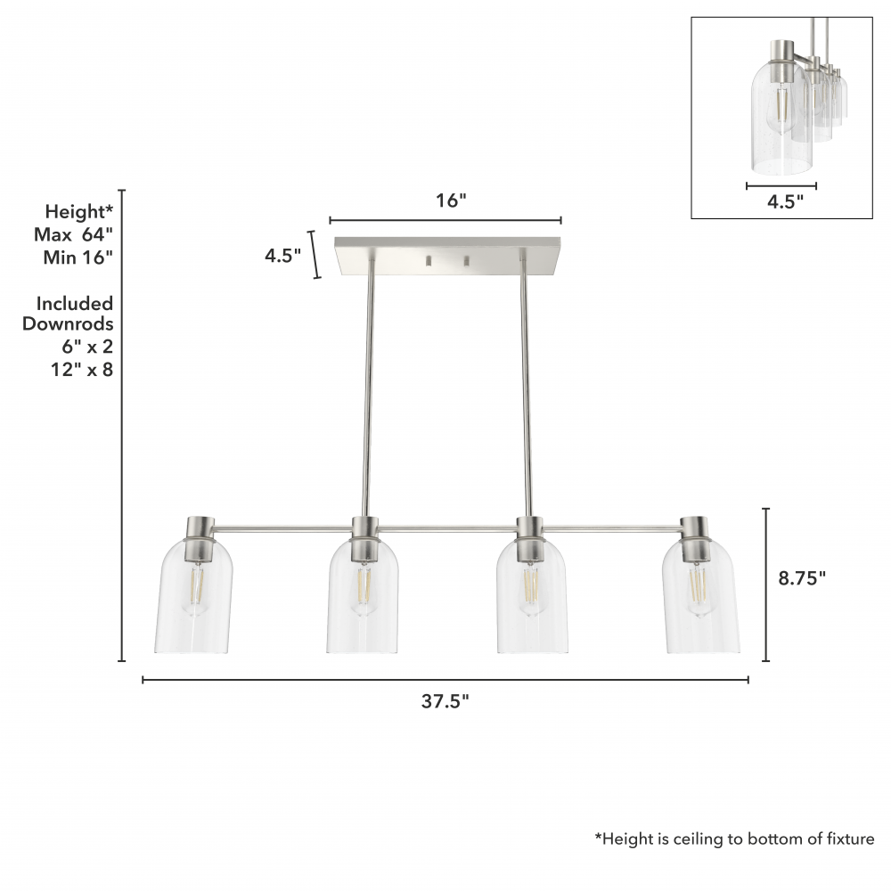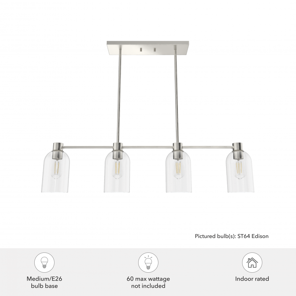 The Lochemeade linear chandelier blends simplicity with strength for a strikingly beautiful design. The modern chandelier’s strong lines and four glass dome shades embrace minimalist design. Use the Lochemeade linear chandelier with other fixtures from the collection to create a cohesive look in your home. Mix and match with fans from our ceiling fan collections to fully finish your space.