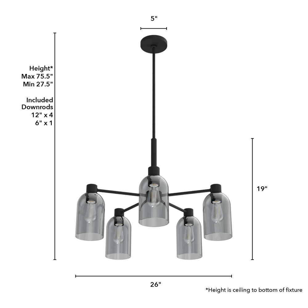 Requires 5 E26 bulbs. Bulbs not included.