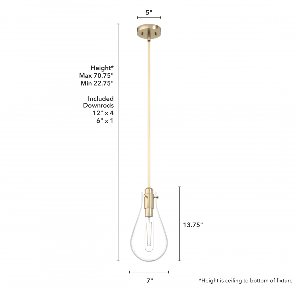 CUSTOMIZABLE HANGING OPTIONS: With the minimum required downrod, the hanging length is 22.75 inches. When using all of the included downrod, the maximum hanging length is 70.75 inches.