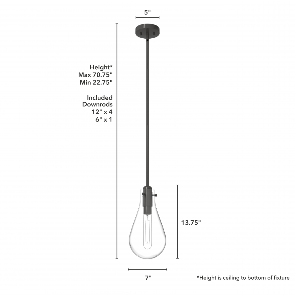 CUSTOMIZABLE HANGING OPTIONS: With the minimum required downrod, the hanging length is 22.75 inches. When using all of the included downrod, the maximum hanging length is 70.75 inches.