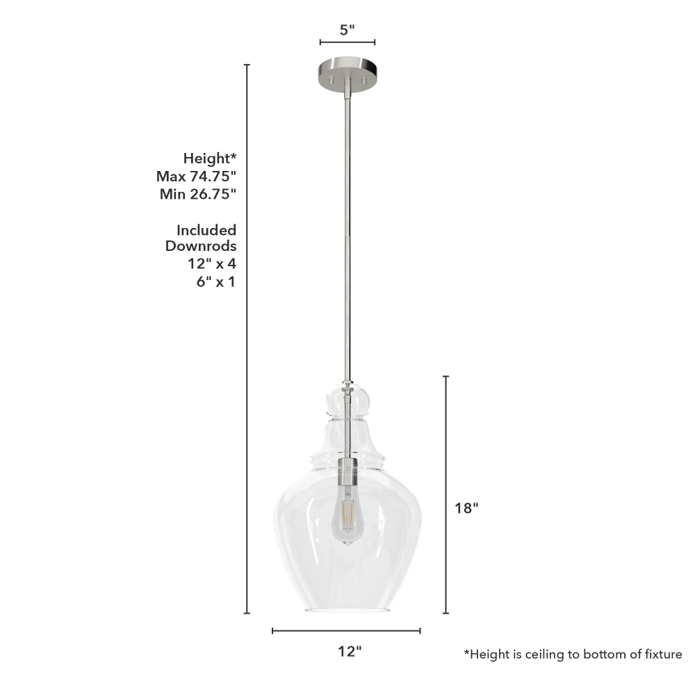 CUSTOMIZABLE HANGING OPTIONS: With the minimum required downrod, the hanging length is 27 inches. When using all of the included downrod, the maximum hanging length is 75 inches.