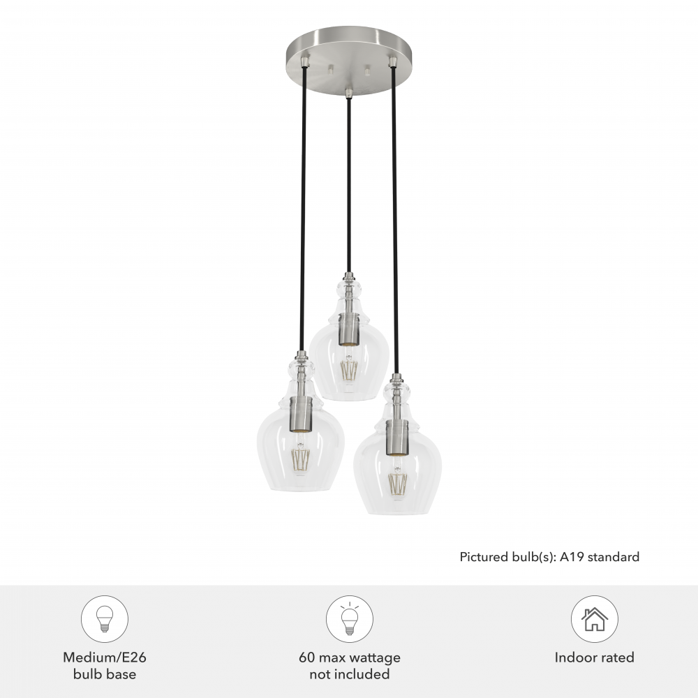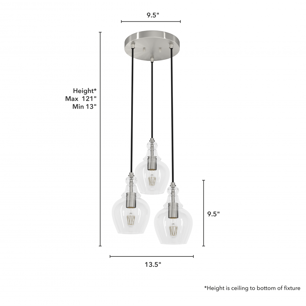 Good things often come in threes—like the Maple Park round cluster, featuring a trio of clear domes. Perfect in your breakfast nook or any intimate kitchen space, Maple Park bridges modern style with casual comfort. Staggered lights add an air of elevation while the fixture’s smooth curves reflect a warming glow. Mix and match with other fixtures from this collection or from our ceiling fan designs.