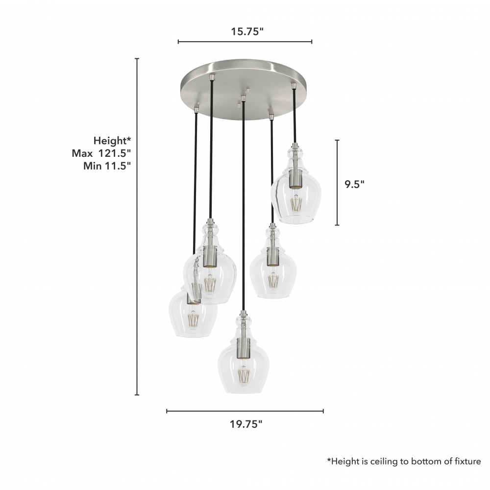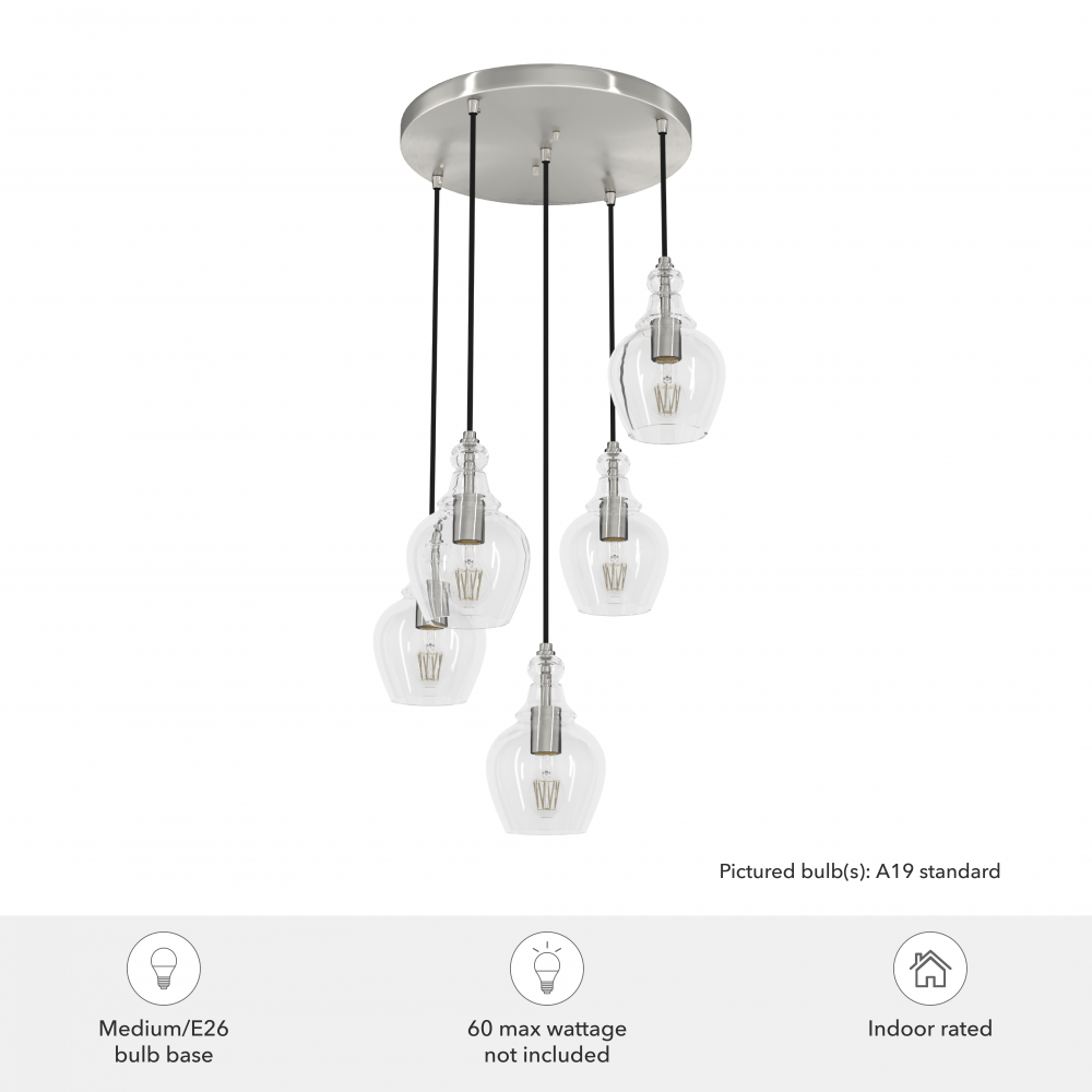 Hunter’s Maple Park round cluster is a brilliant addition to any foyer, atrium, or dining room. Individual domes in clear glass cascade down from the fixture’s flush mount base, creating a rippled radiance that warms the room. Merging modern design with casual comfort, the Maple Park is a thoughtful nod to the new traditional style. Mix and match with other fixtures from this collection or from our ceiling fan designs.