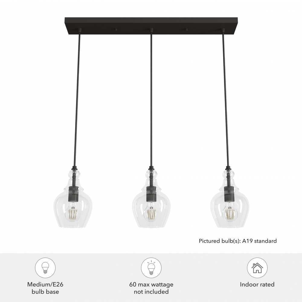 Requires 3 E26 bulbs. Bulbs not included.