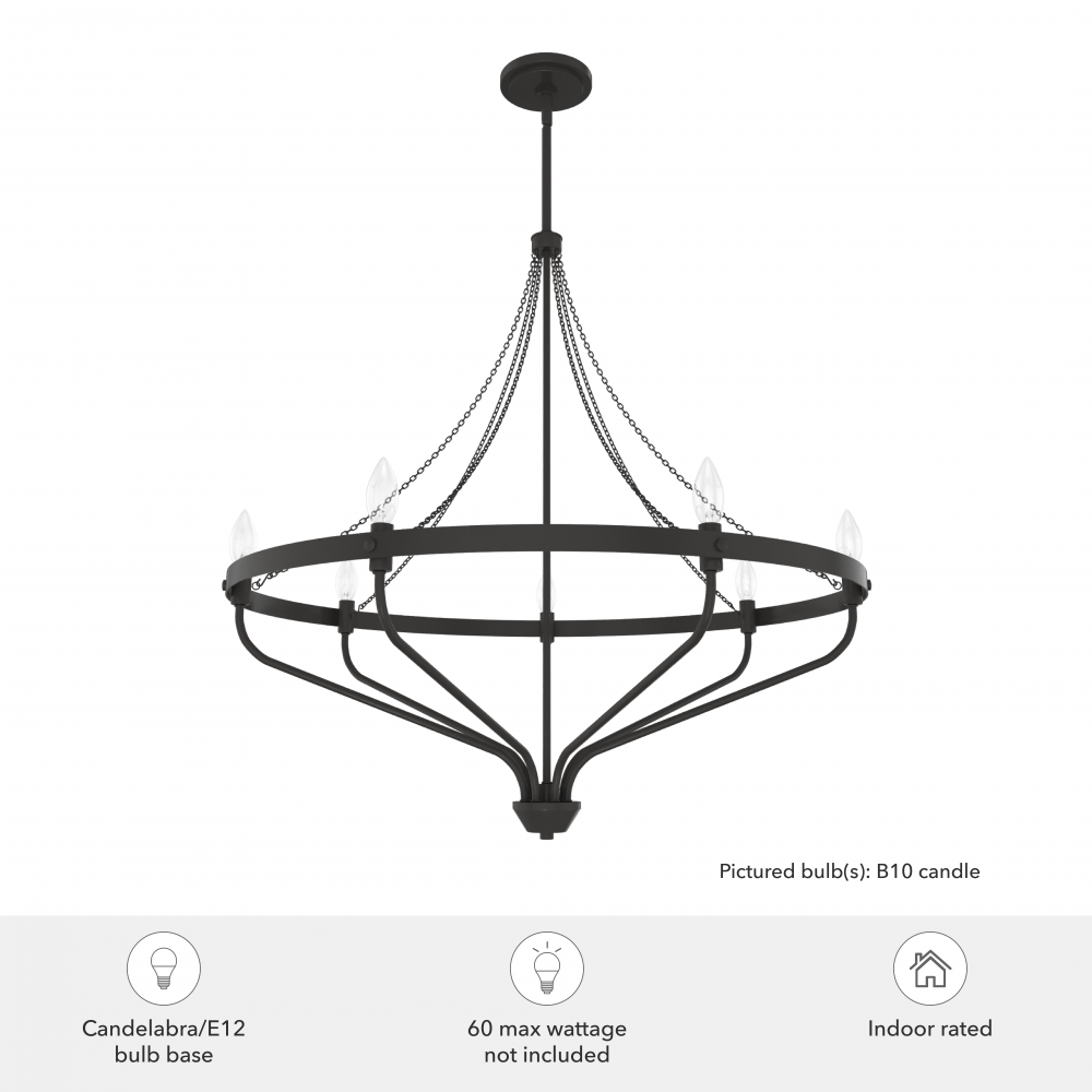 Warmth and wonder converge in Hunter’s chandelier—a showstopping piece from our Merlin collection. A ring of luminaries in tubular bulbs evokes a sense of magic and mystery, while the Merlin’s modern angles and clean lines serve to ground the fixture in contemporary style. Available in multiple finishes, the Merlin chandelier is a mesmerizing addition to your design scheme. Mix and match with other fixtures from this collection or from our ceiling fan designs.