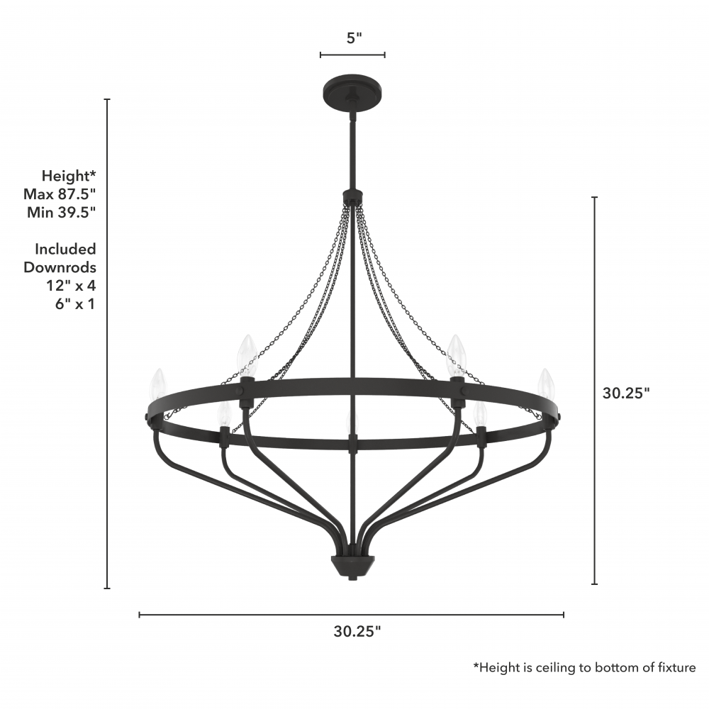 CUSTOMIZABLE HANGING OPTIONS: With the minimum required downrod, the hanging length is 39.5 inches. When using all of the included downrod, the maximum hanging length is 87.5 inches.