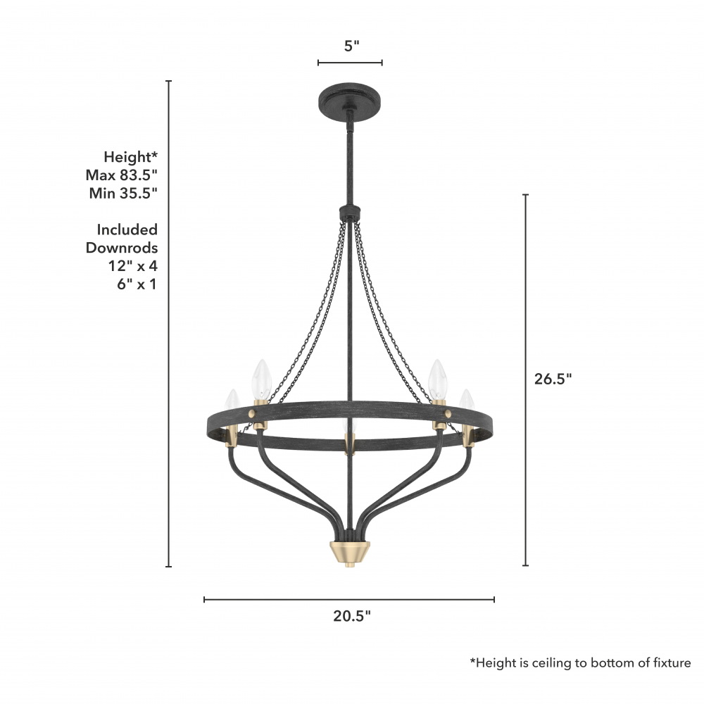CUSTOMIZABLE HANGING OPTIONS: With the minimum required downrod, the hanging length is 35.5 inches. When using all of the included downrod, the maximum hanging length is 83.5 inches.