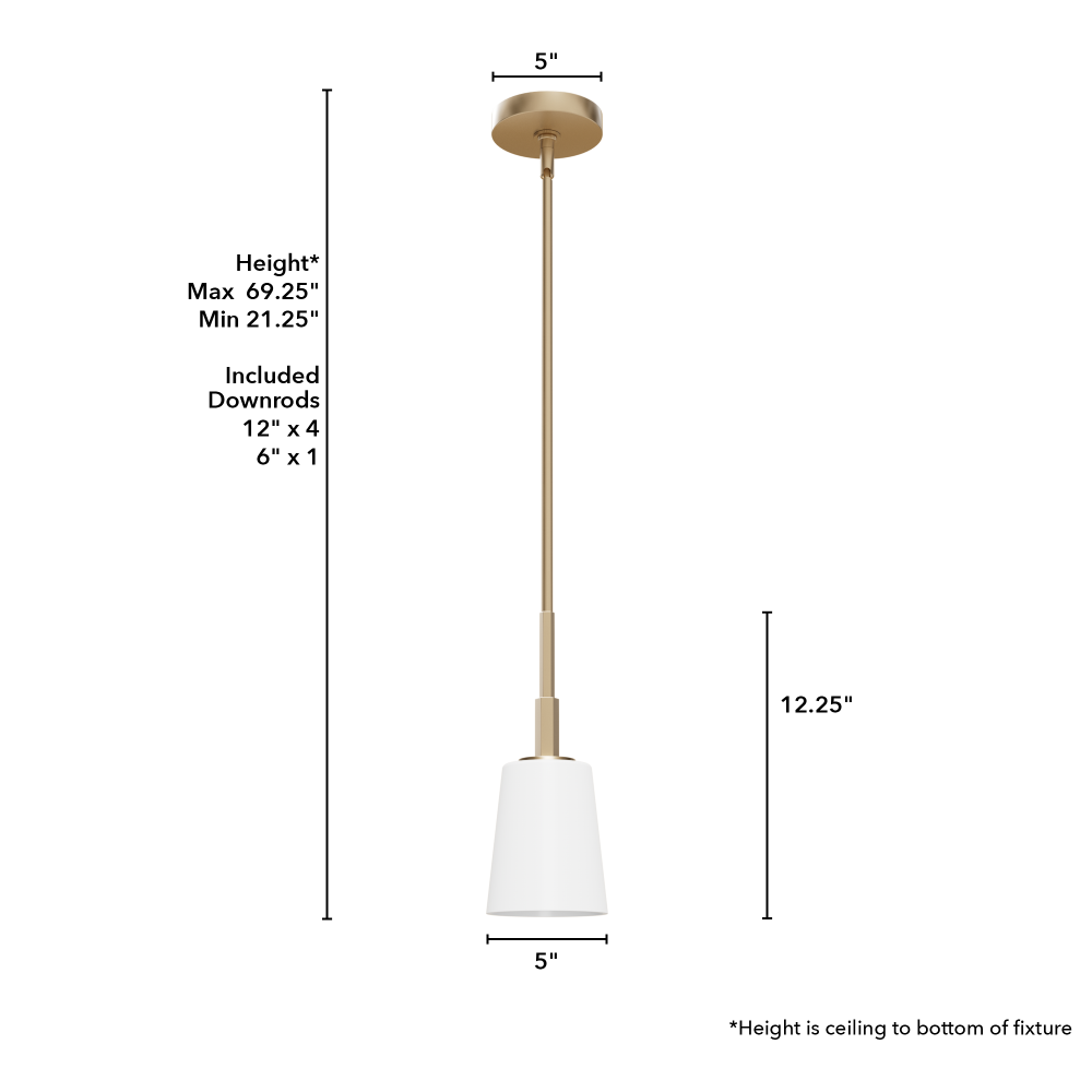 CUSTOMIZABLE HANGING OPTIONS: With the minimum required downrod, the hanging length is 21.25 inches. When using all of the included downrod, the maximum hanging length is 69.25 inches.