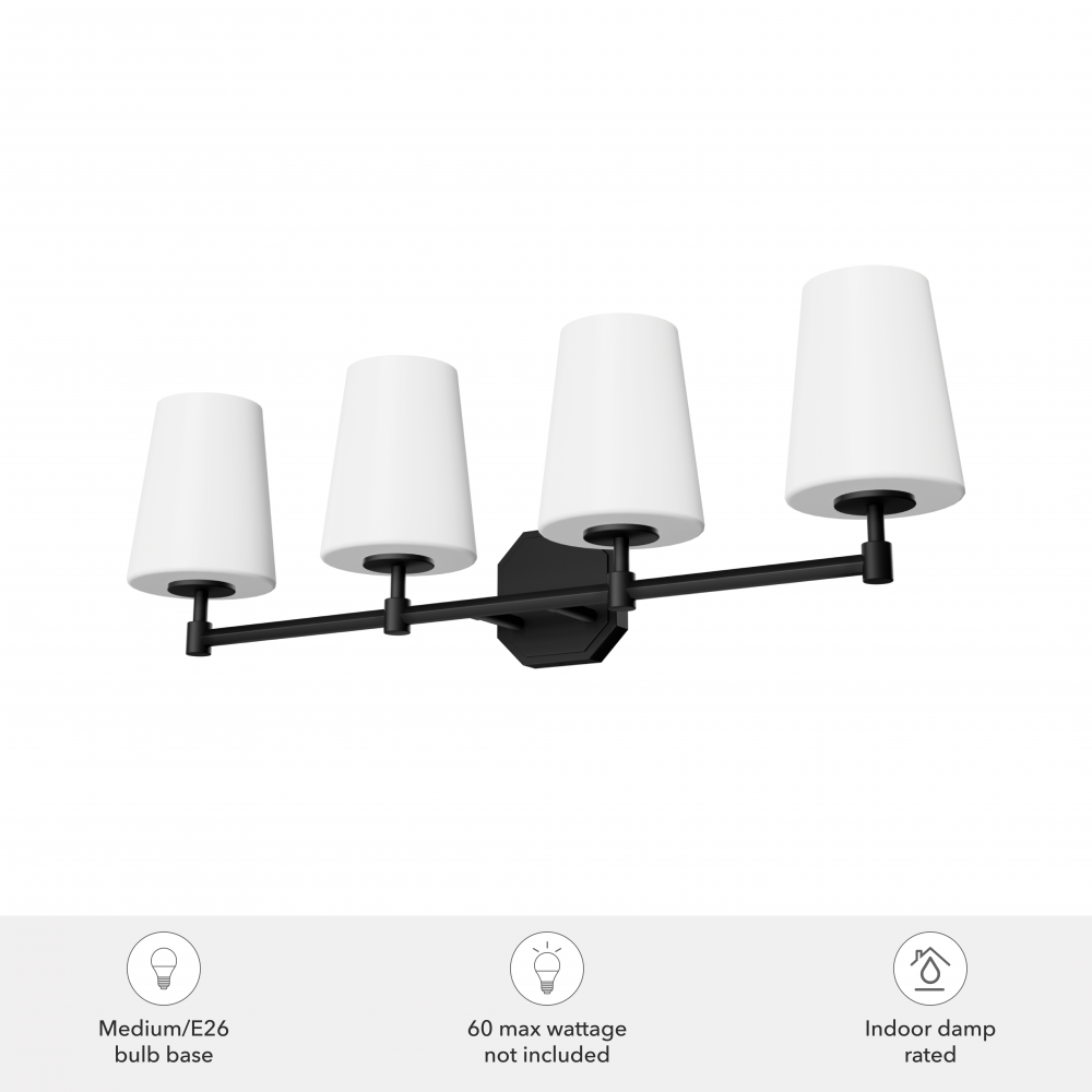 Requires 4 E26 bulbs. Bulbs not included.