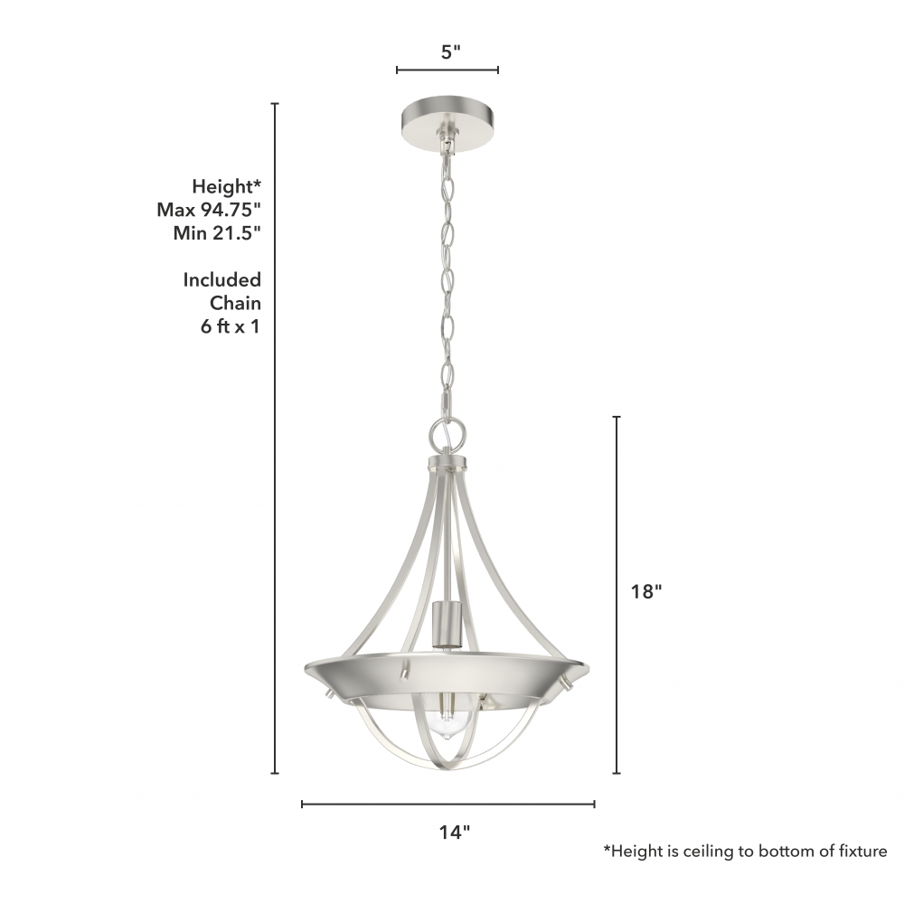 CUSTOMIZABLE HANGING OPTIONS: With the minimum required chain, the hanging length is 18 inches. When using all of the included chain, the maximum hanging length is 94.5 inches.