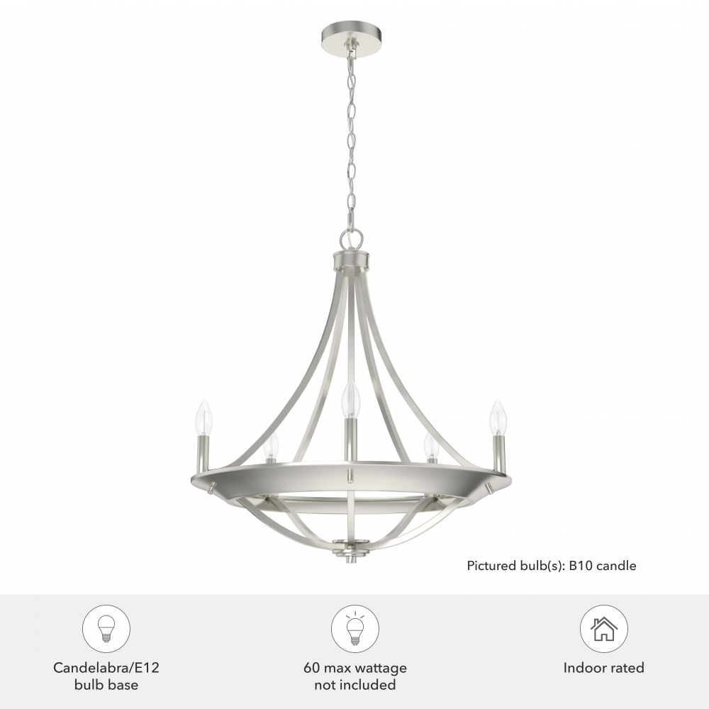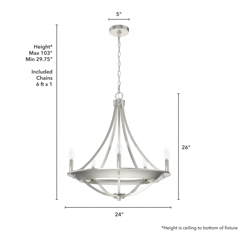 Need the beauty of an escape to the mountains? Create that feeling right at home with the Perch Point 5 light chandelier. The basket-shaped curve of the metal chandelier adds a modern, rustic touch that evokes the feeling of a weekend retreat at a ski resort. It will create an inviting ambiance in your living or dining room. Spread the elevated beauty of the Perch Point collection throughout your home.