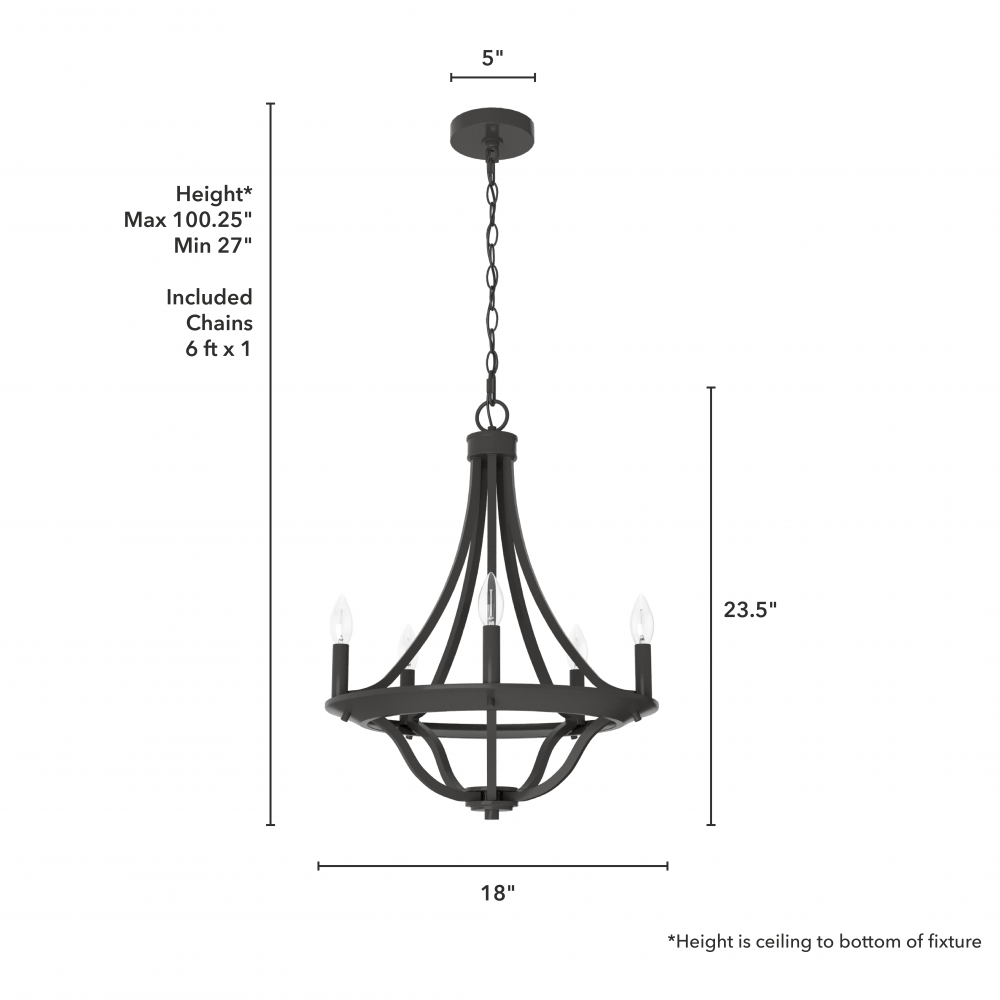 Need the beauty of an escape to the mountains? Create that feeling right at home with the Perch Point 5 light chandelier. The basket-shaped curve of the metal chandelier adds a modern, rustic touch that evokes the feeling of a weekend retreat at a ski resort. It will create an inviting ambiance in your living or dining room. Spread the elevated beauty of the Perch Point collection throughout your home.
