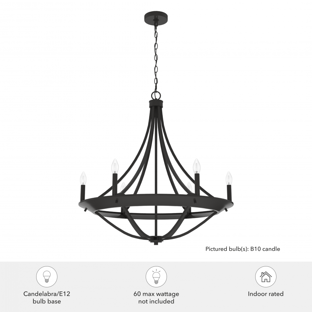 Requires 6 E12 bulbs. Bulbs not included.