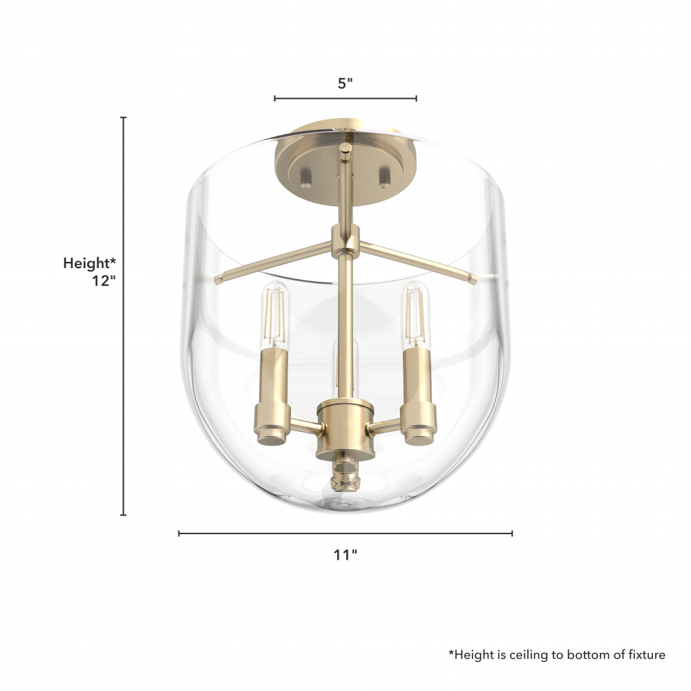 Designed with cathedral-like elegance. The bold Sacha semi-flush mount light adds modern flair to a traditional style. With its clear glass and clean lines, this bell-shaped pendant is the sophisticated addition your space needs. This fixture makes a dramatic statement in low-clearance spaces. It’s part of a larger collection, so pair this flush mount light with other beautiful Sacha fixtures.