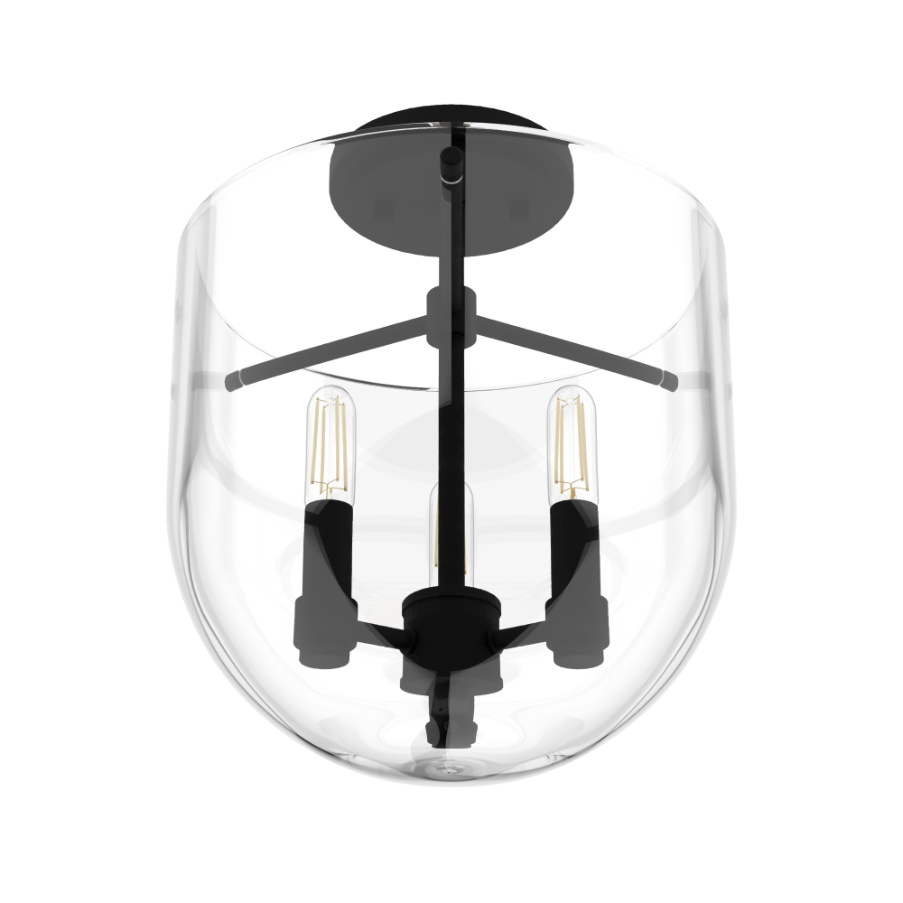 Hunter Sacha Natural Black Iron with Clear Glass 3 Light Flush Mount Ceiling Light Fixture