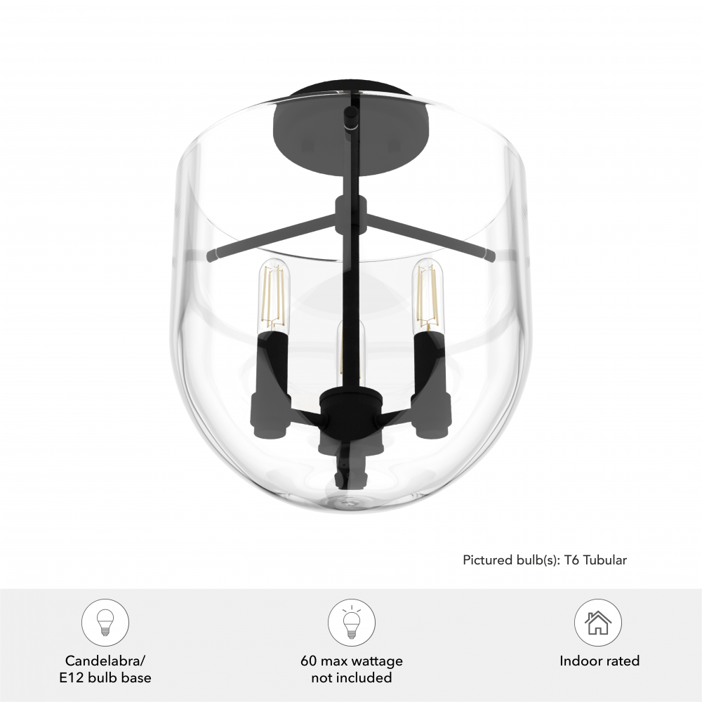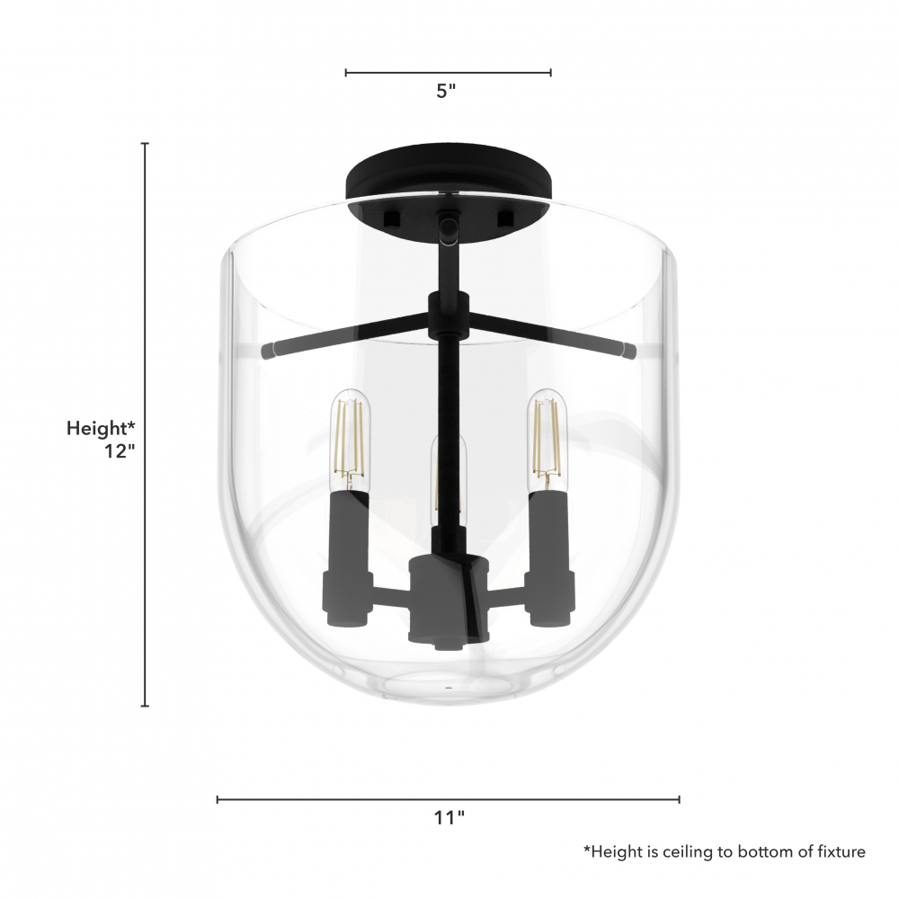 Designed with cathedral-like elegance. The bold Sacha semi-flush mount light adds modern flair to a traditional style. With its clear glass and clean lines, this bell-shaped pendant is the sophisticated addition your space needs. This fixture makes a dramatic statement in low-clearance spaces. It’s part of a larger collection, so pair this flush mount light with other beautiful Sacha fixtures.