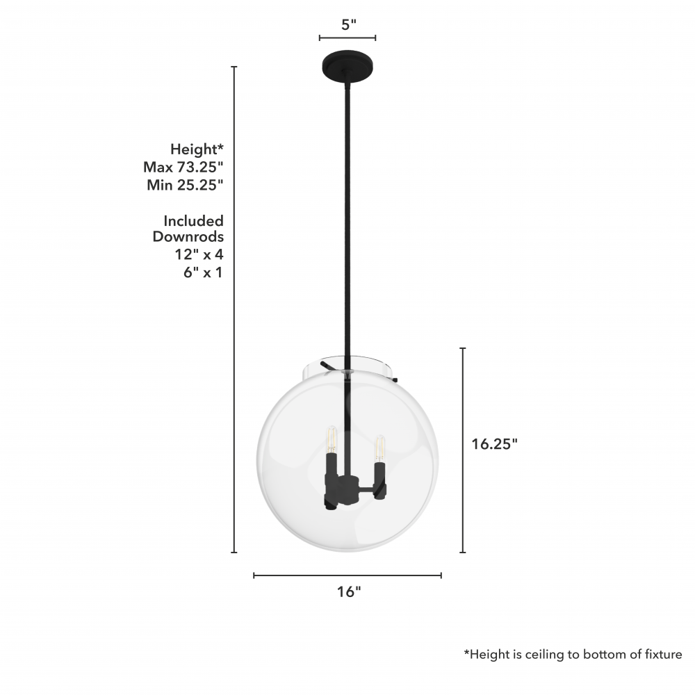 CUSTOMIZABLE HANGING OPTIONS: With the minimum required downrod, the hanging length is 25.25 inches. When using all of the included downrod, the maximum hanging length is 73.25 inches.