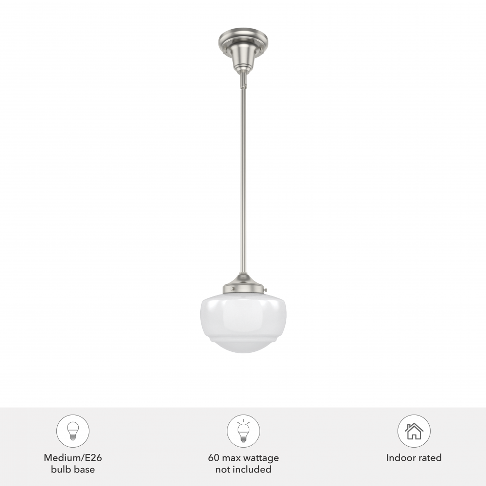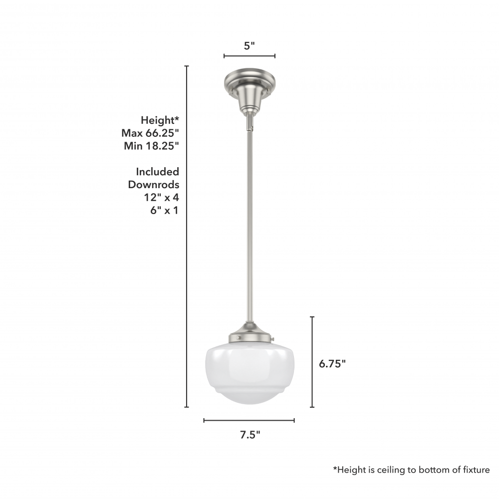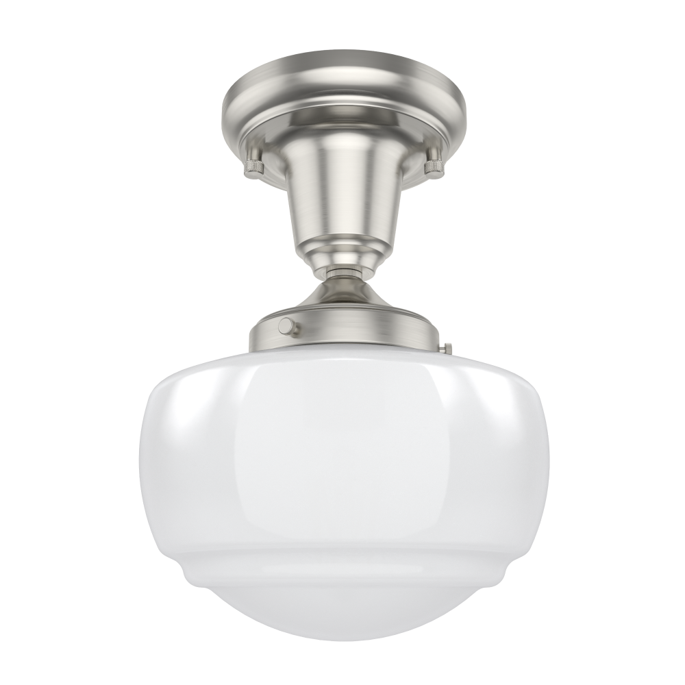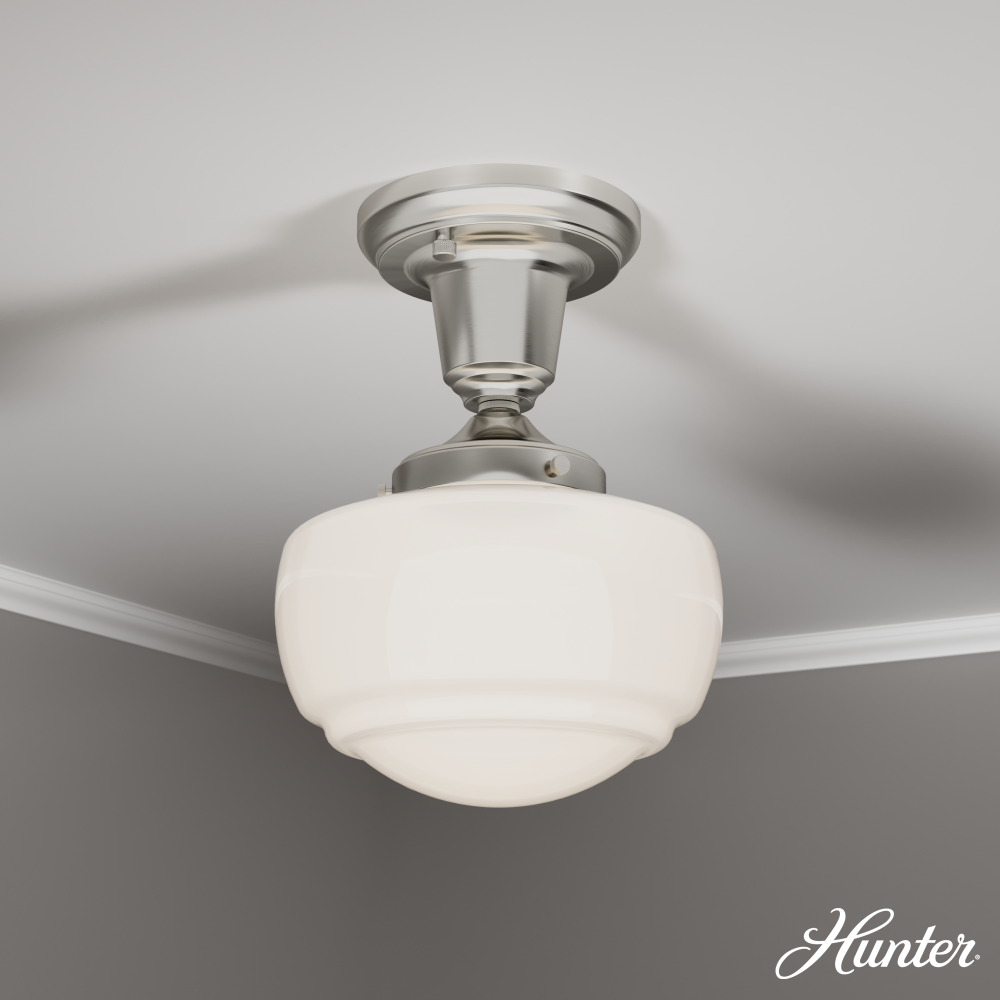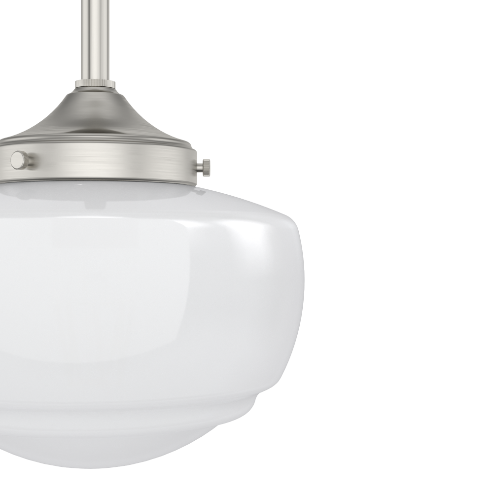 Traditional design. Elevated elements. The Saddle Creek mini pendant draws inspiration from the iconic American schoolhouse light but adds an updated touch with subtle detailing in the glass shade. For those who want all-in-one light fixtures, this schoolhouse-inspired mini pendant can also be installed as a semi-flush mount lighting.