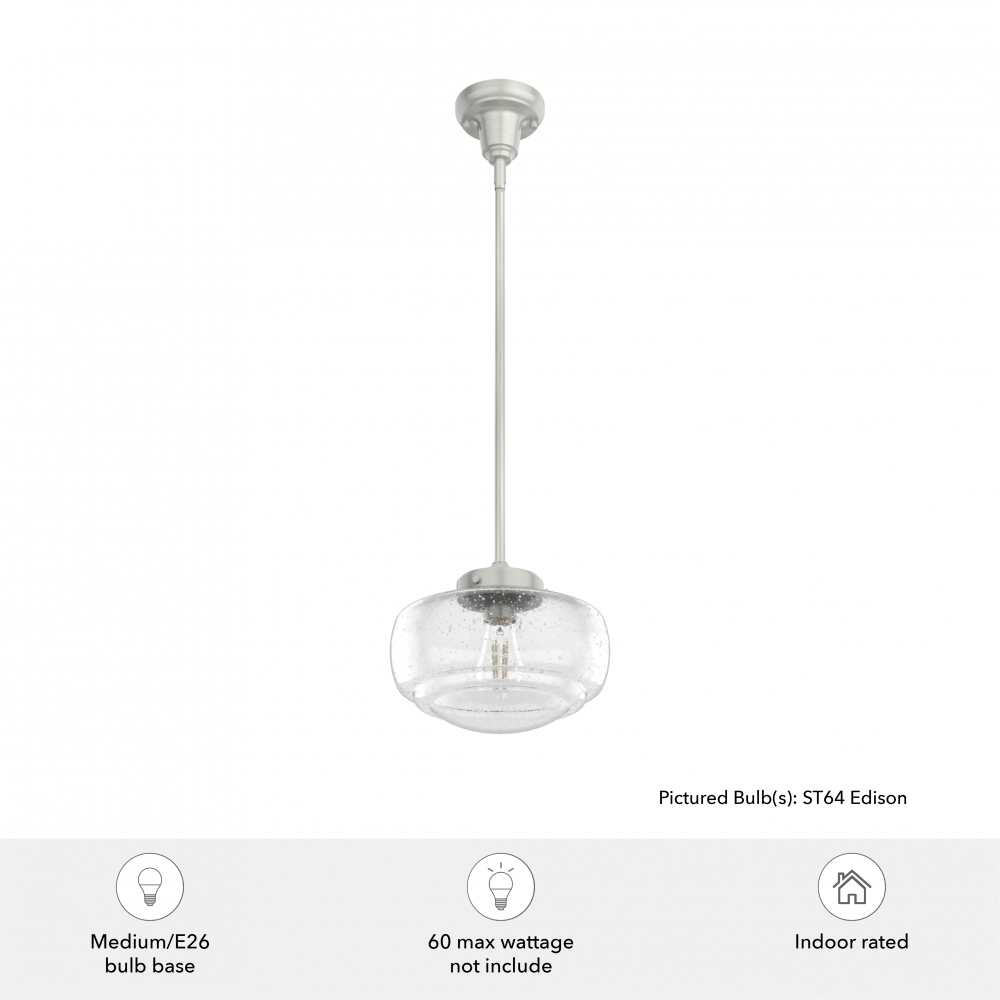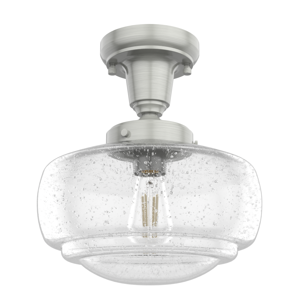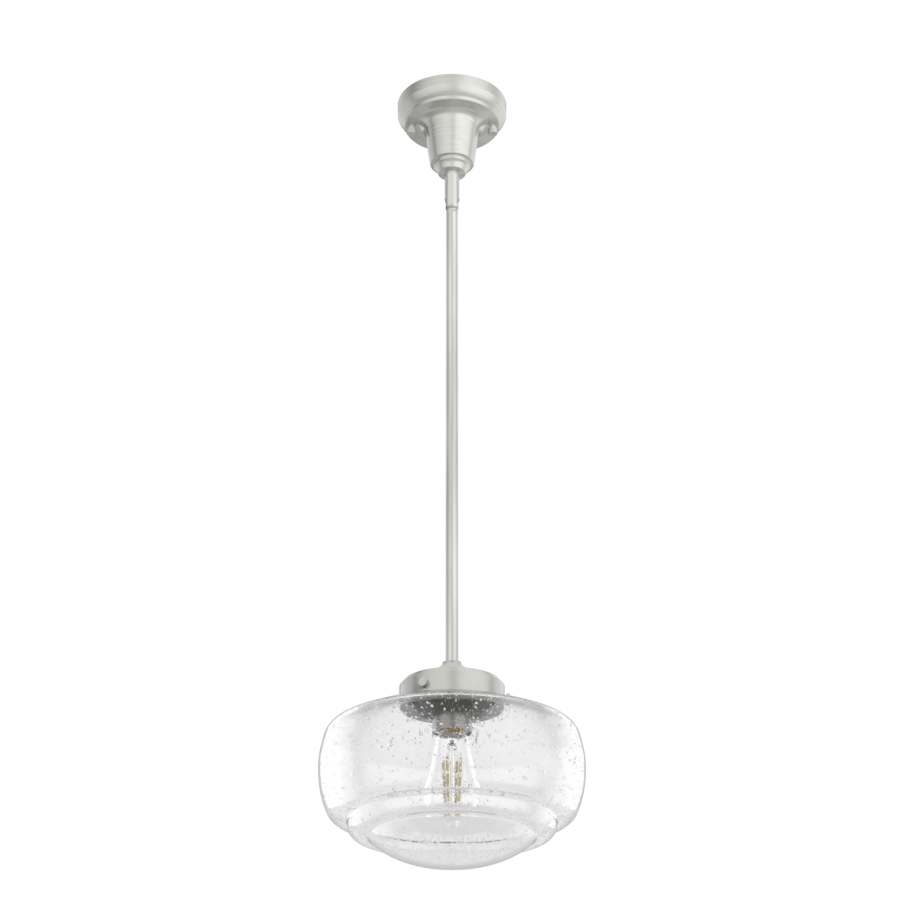Traditional design. Elevated elements. The Saddle Creek mini pendant draws inspiration from the iconic American schoolhouse light but adds an updated touch with subtle detailing in the glass shade. For those who want all-in-one light fixtures, this schoolhouse-inspired mini pendant can also be installed as a semi-flush mount lighting.