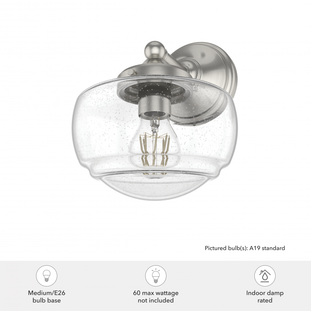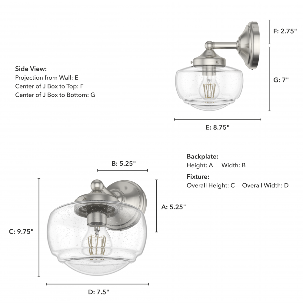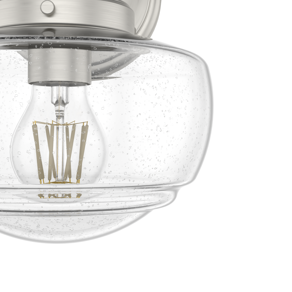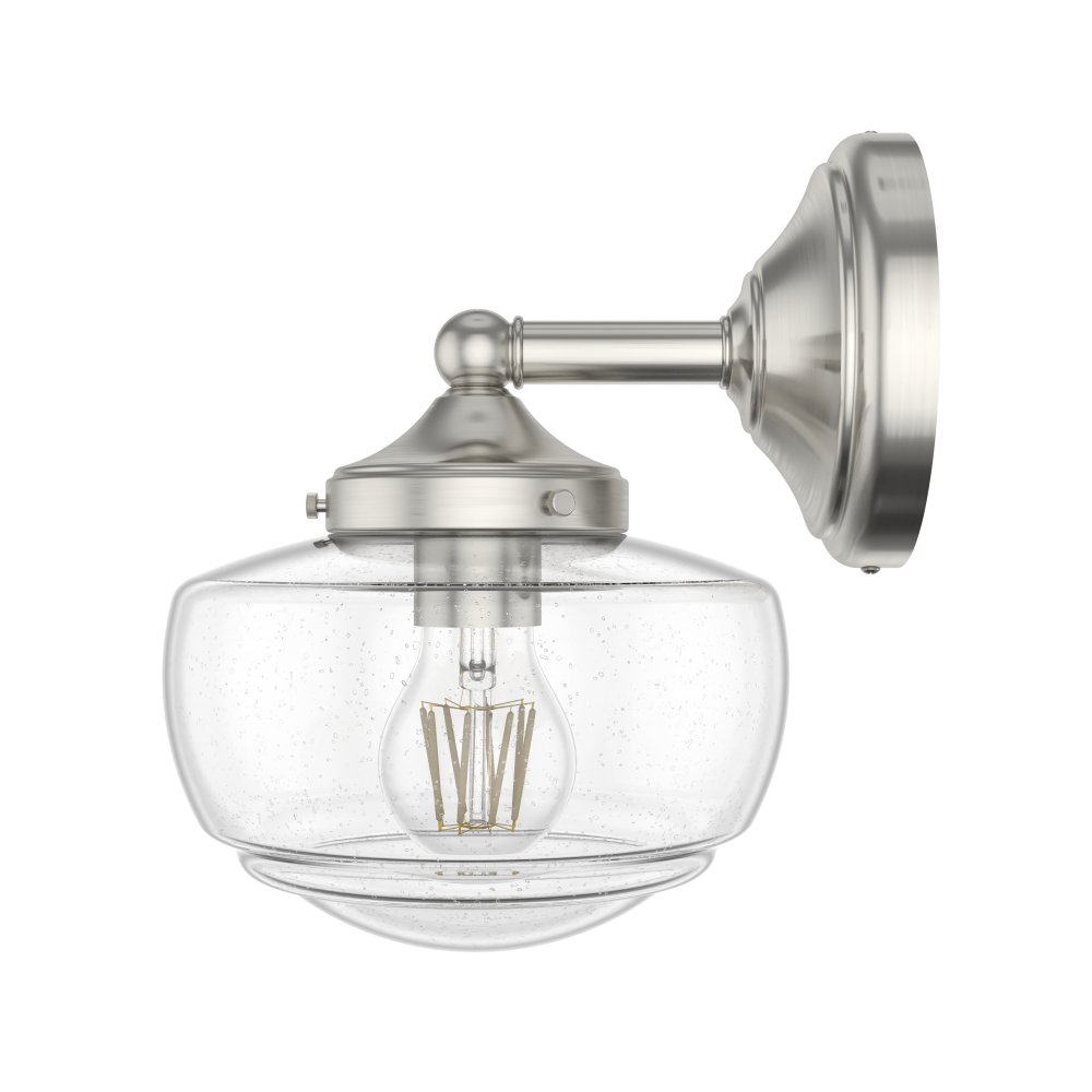 The Saddle Creek wall sconce combines traditional schoolhouse style with elevated elements to create a fresh spin on a classic design. Inspired by the iconic American schoolhouse light, Saddle Creek illustrates the contemporary design principle of better, not more. The detailed glass shade complements the casual simplicity of the sconce’s metal fittings and finish. Mix and match with other fixtures from this collection or from our ceiling fan designs.