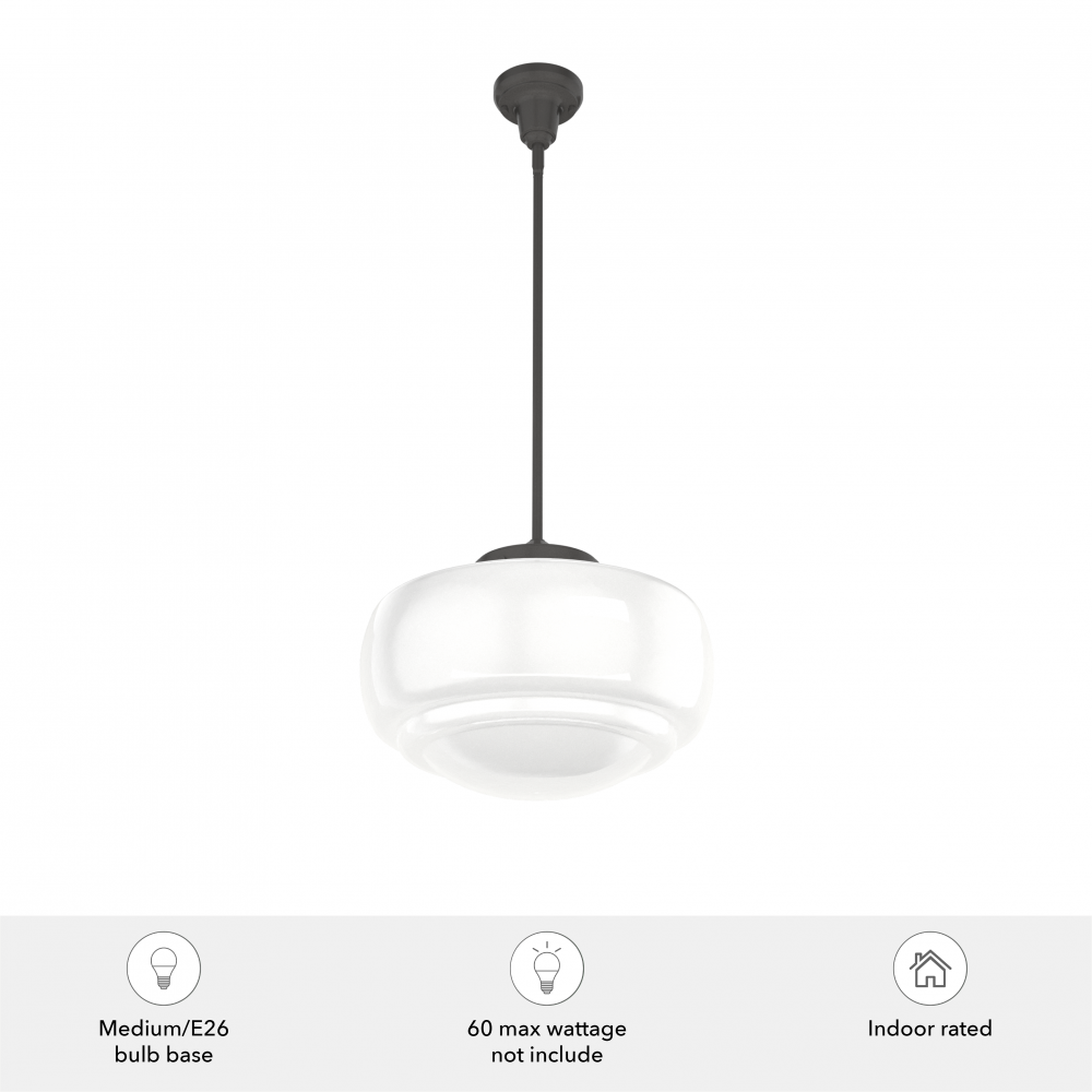 A classic lighting design reimagined. The Saddle Creek Large pendant draws inspiration from the iconic American schoolhouse light but elevates it with subtle detailing in the glass shade. For those who like flexibility with their lighting, this large pendant can also be installed as a semi-flush mount light fixture. Mix and match with other fixtures from this collection or from our ceiling fan designs.