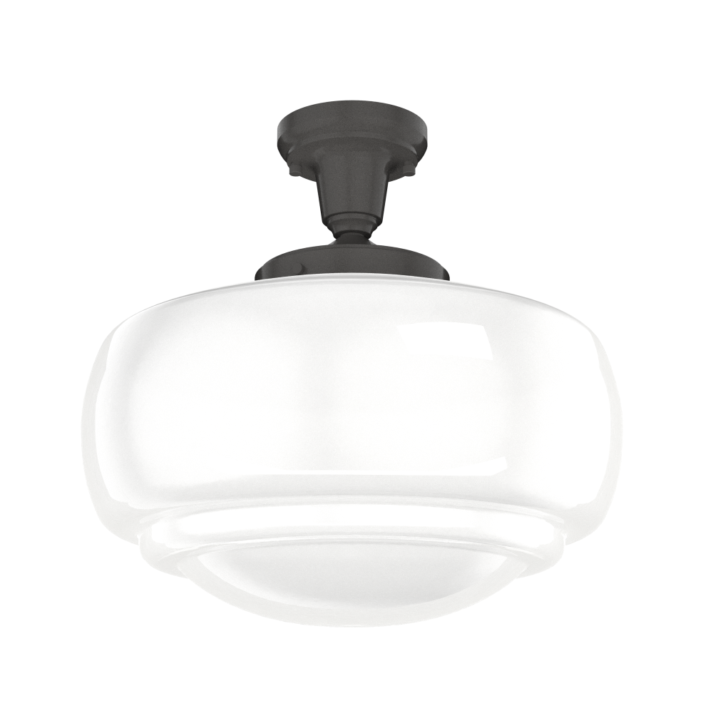 A classic lighting design reimagined. The Saddle Creek mini pendant draws inspiration from the iconic American schoolhouse light but elevates it with subtle detailing in the glass shade. For those who like flexibility with their lighting, this large 1-light pendant can also be installed as a semi-flush mount light fixture.