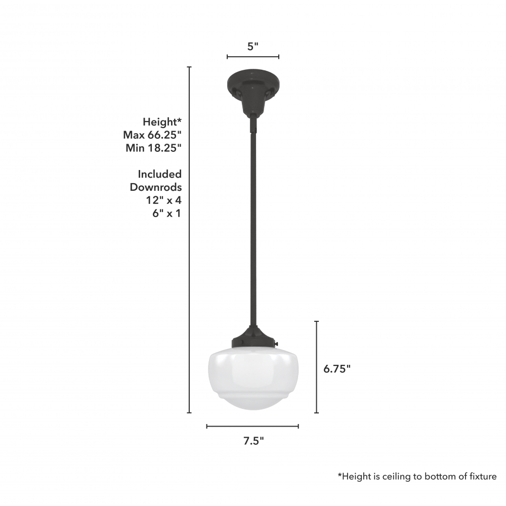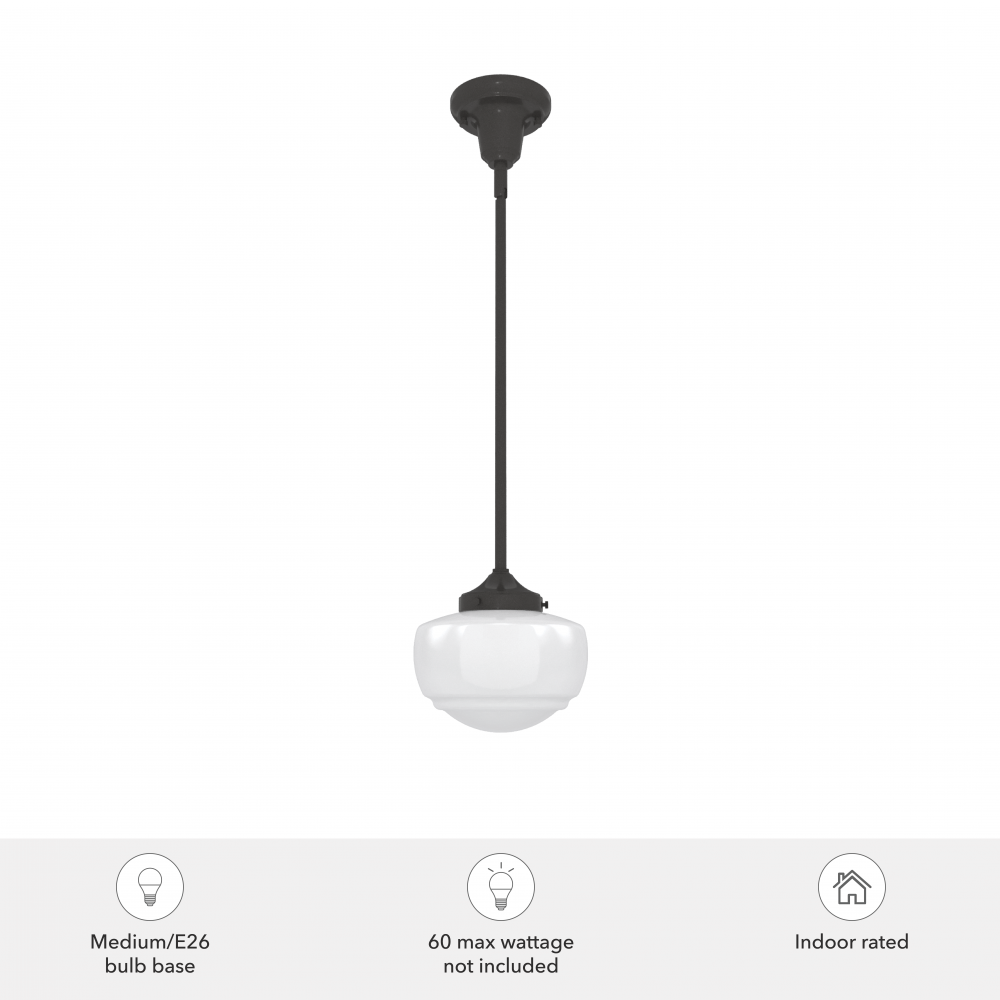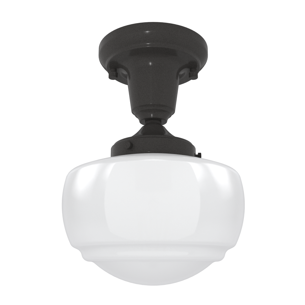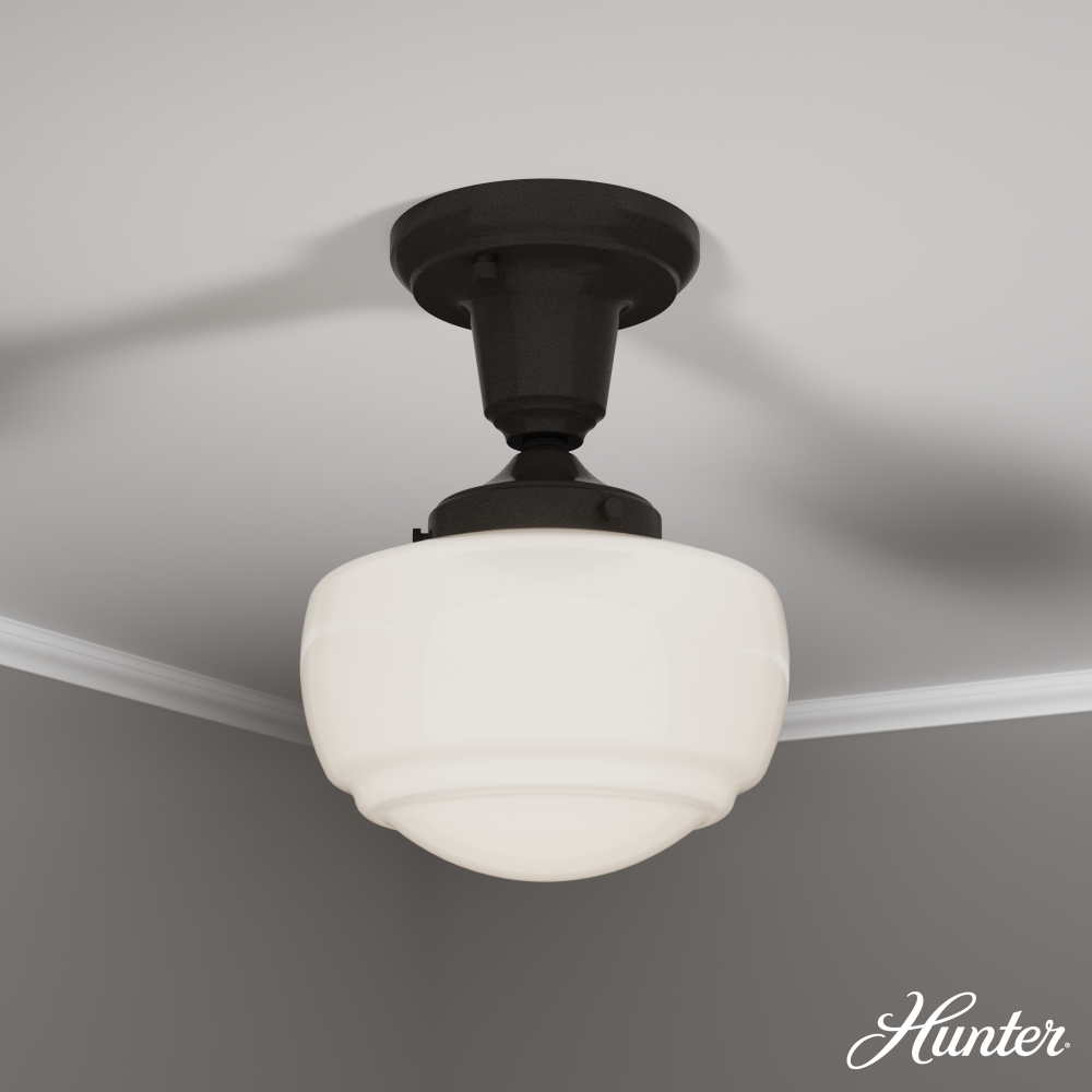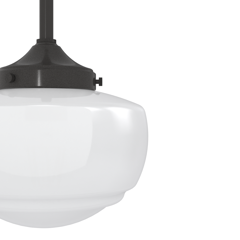 Traditional design. Elevated elements. The Saddle Creek mini pendant draws inspiration from the iconic American schoolhouse light but adds an updated touch with subtle detailing in the glass shade. For those who want all-in-one light fixtures, this schoolhouse-inspired mini pendant can also be installed as a semi-flush mount lighting. Mix and match with other fixtures from this collection or from our ceiling fan designs.