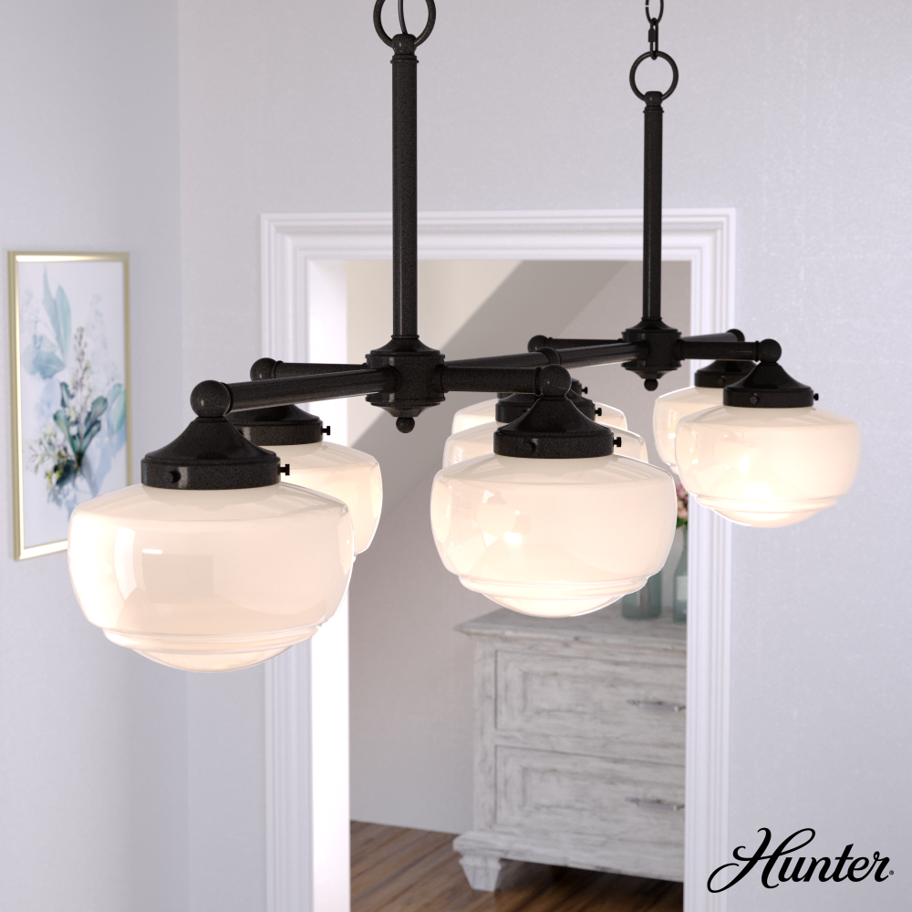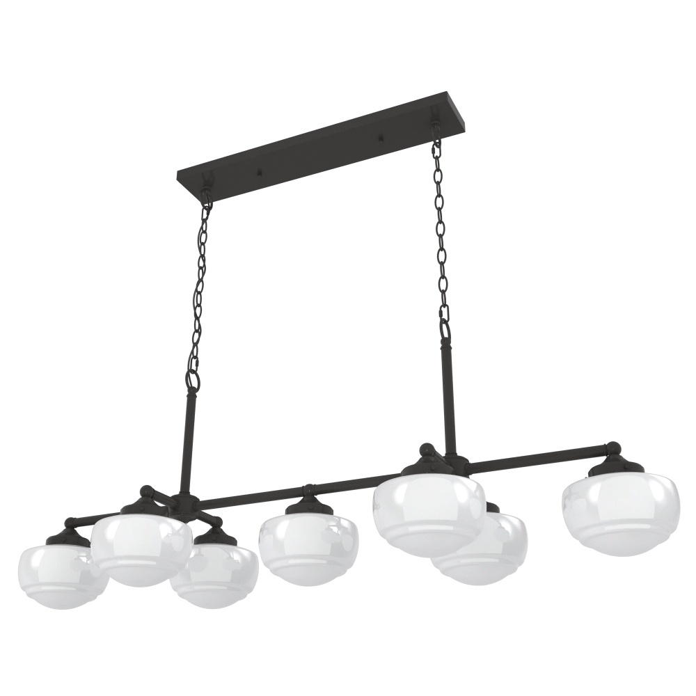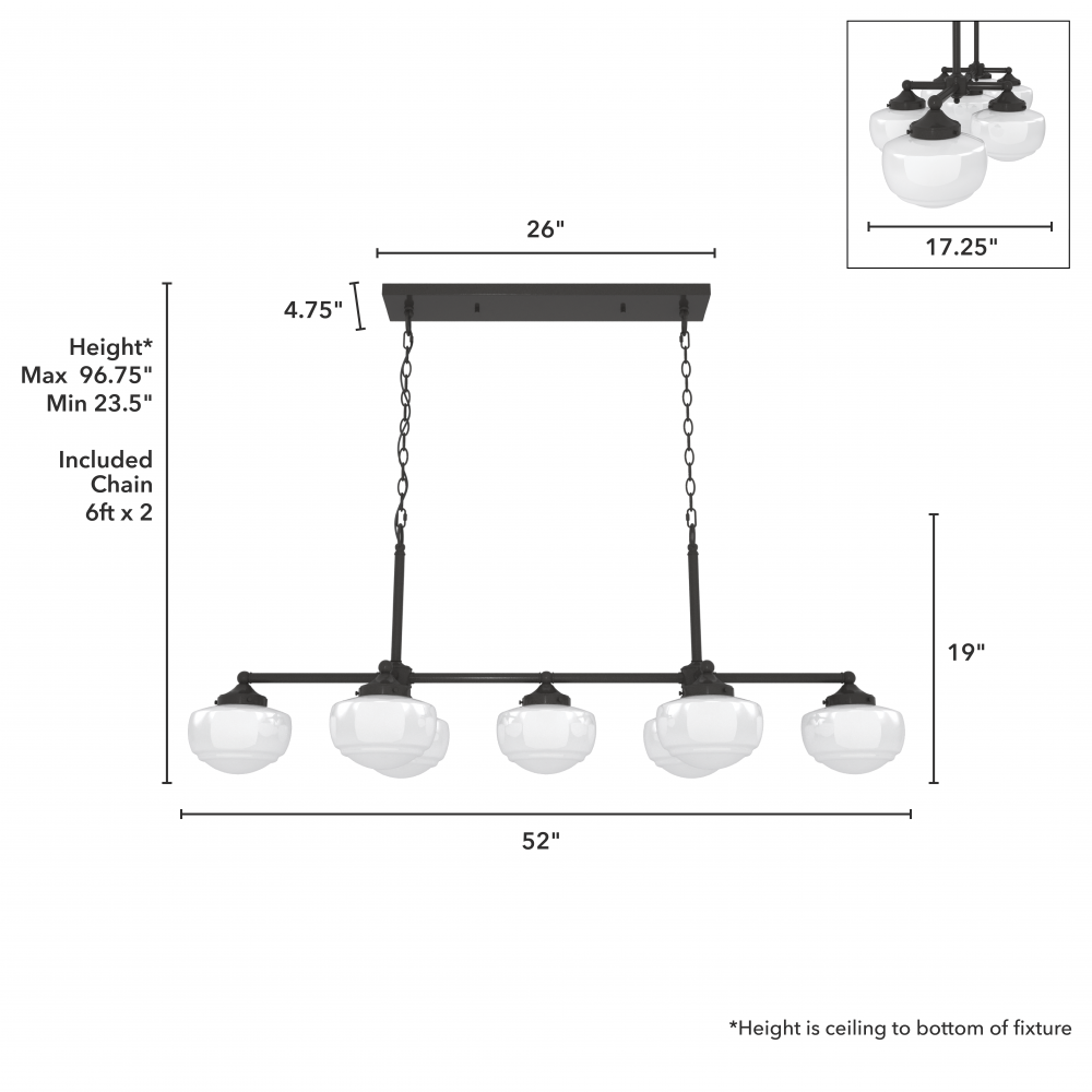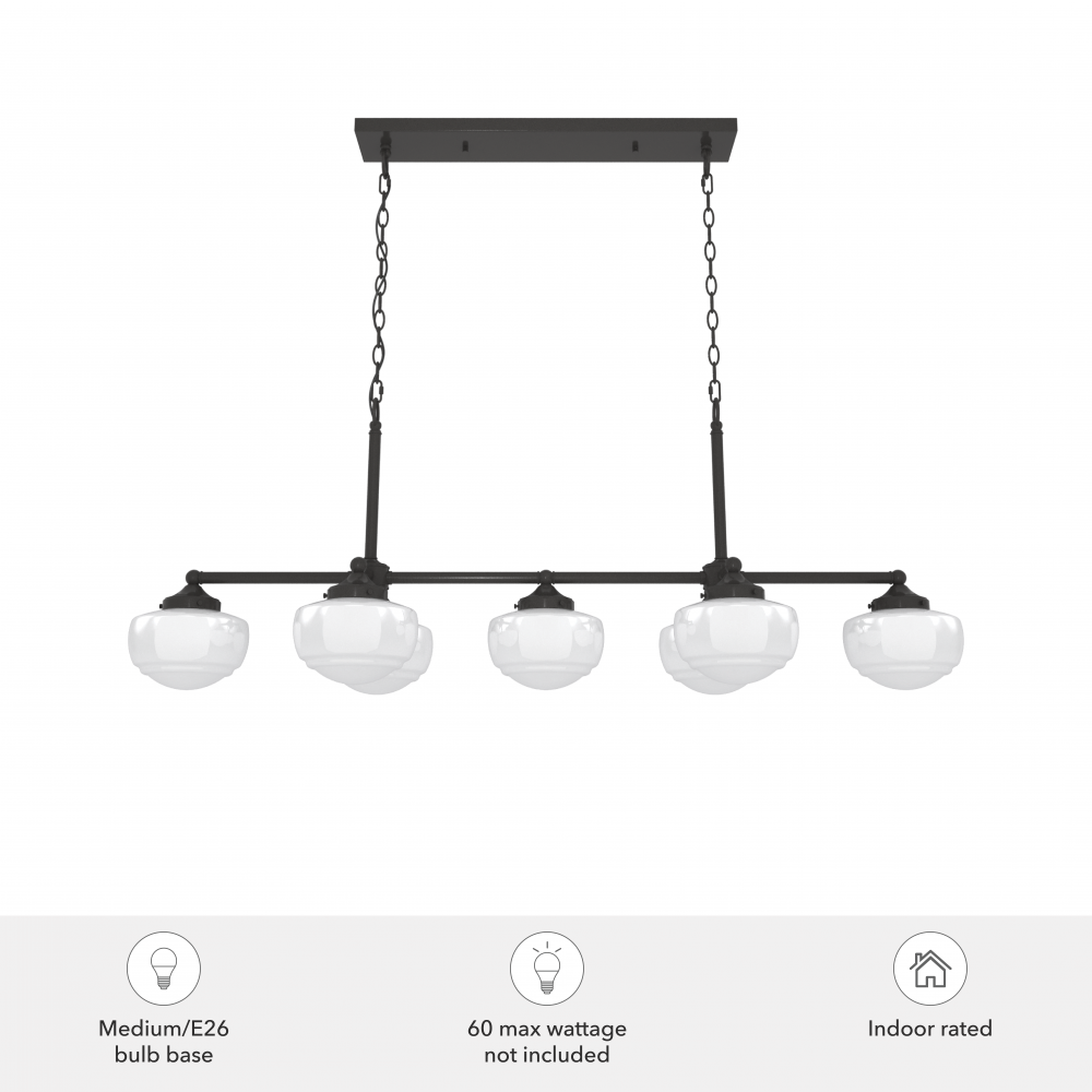 With its modern take on schoolhouse style, the Saddle Creek linear chandelier might be the perfect fixture for your home’s dining room or kitchen. Artfully arranged glass globes offset the chandelier’s simple metal finish, creating a piece elegant enough to accent a formal dining room yet casual enough for a kitchen island. The Saddle Creek offers a fresh look at a classic design.