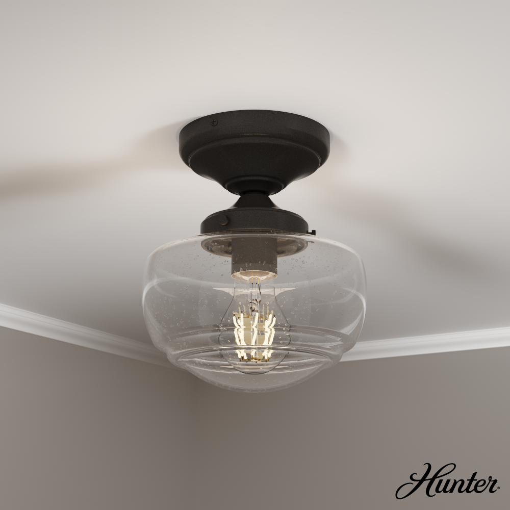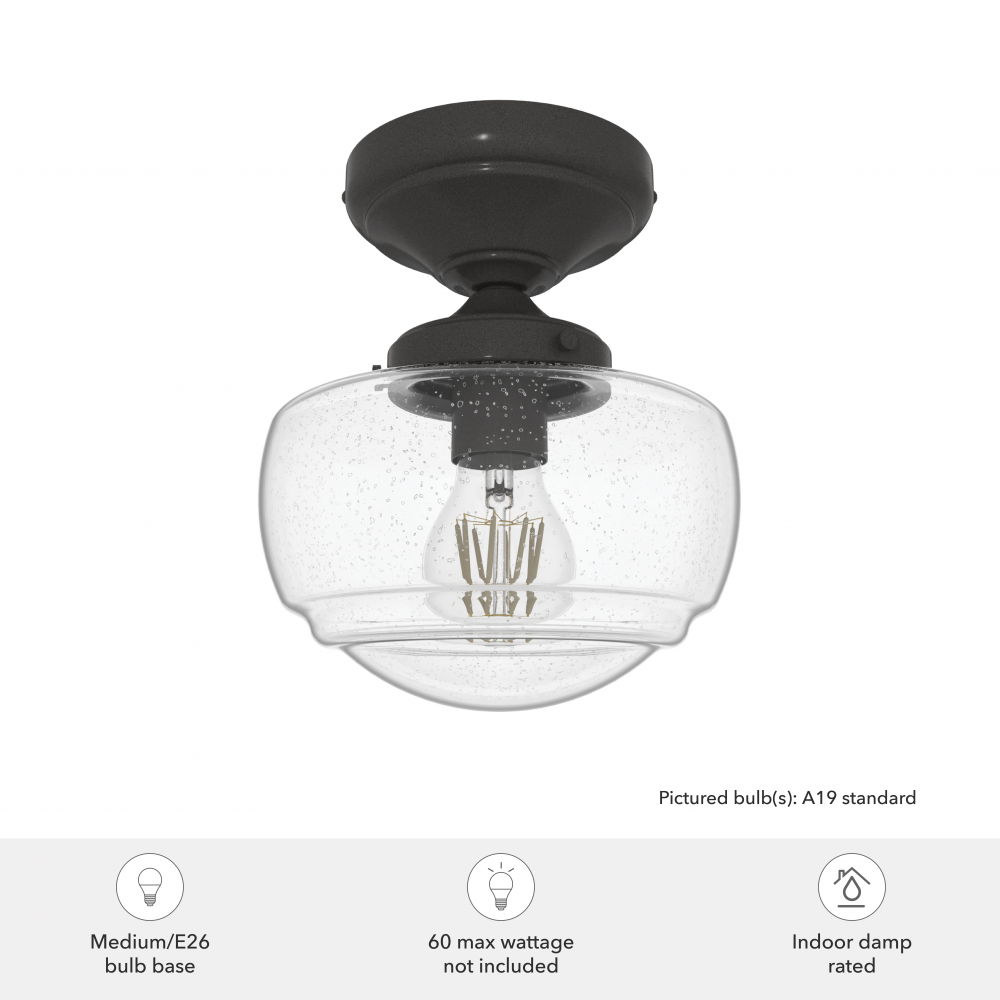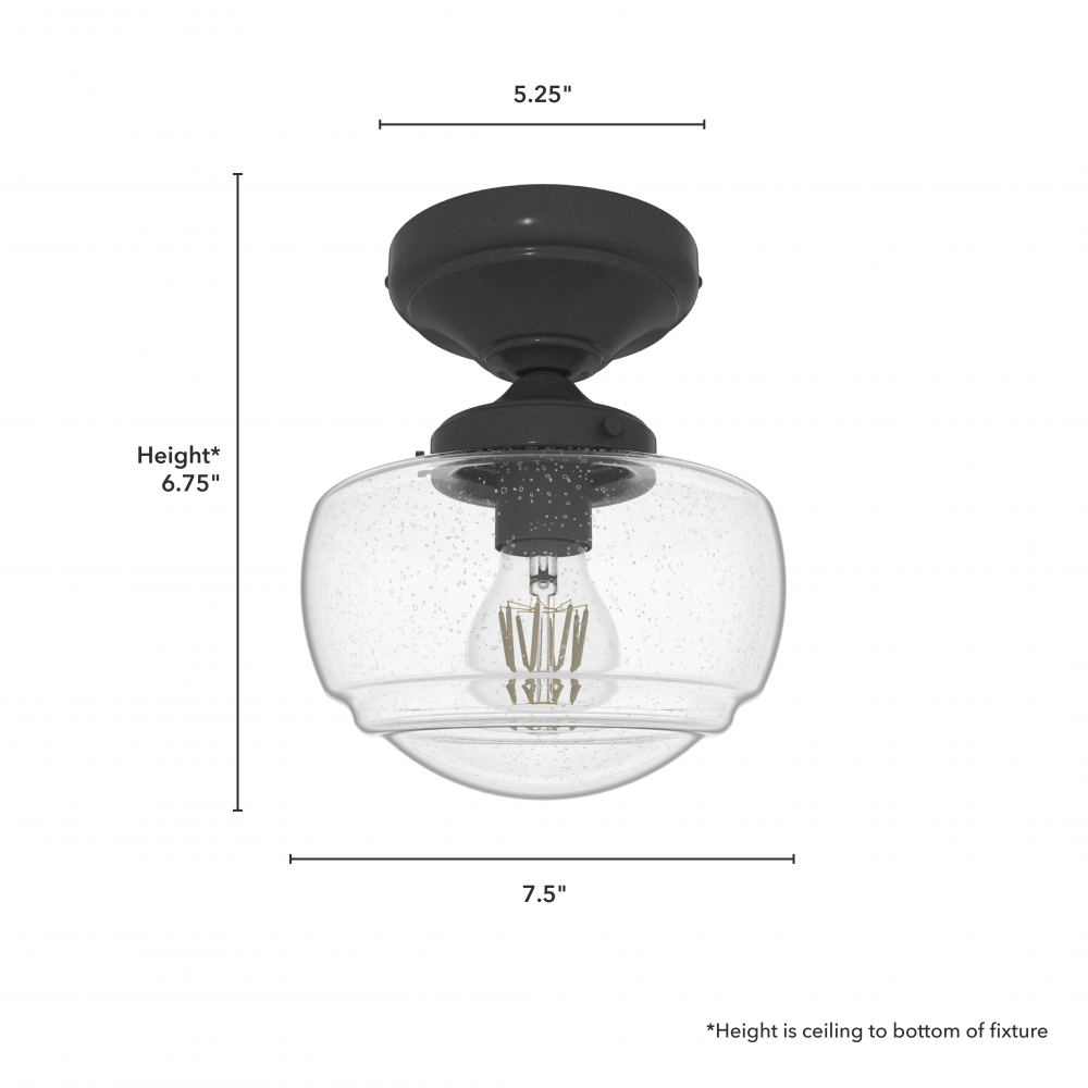 Iconic style, reimagined. Inspired by the classic American schoolhouse light, the Saddle Creek semi-flush mount combines simple design elements to create a subtly sophisticated style. Available in cased white or clear seeded glass, the Saddle Creek’s semi-flush mount makes this fixture an ideal choice for smaller spaces or rooms with low ceilings. Mix and match with other fixtures from this collection or from our ceiling fan designs.