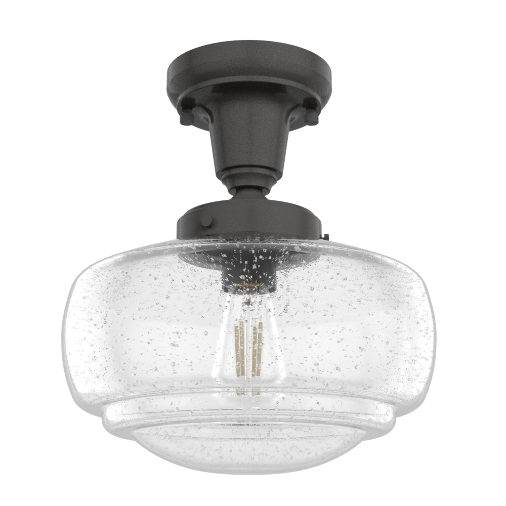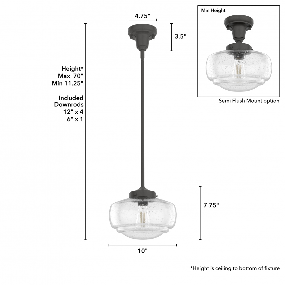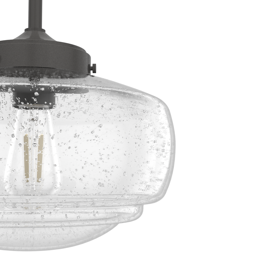 Traditional design. Elevated elements. The Saddle Creek mini pendant draws inspiration from the iconic American schoolhouse light but adds an updated touch with subtle detailing in the glass shade. For those who want all-in-one light fixtures, this schoolhouse-inspired mini pendant can also be installed as a semi-flush mount lighting.